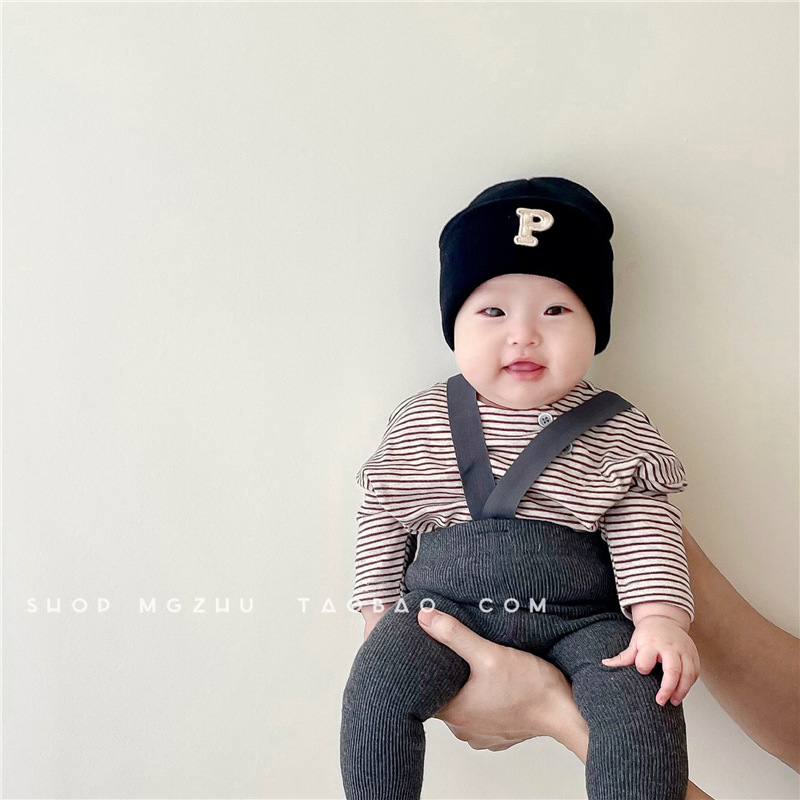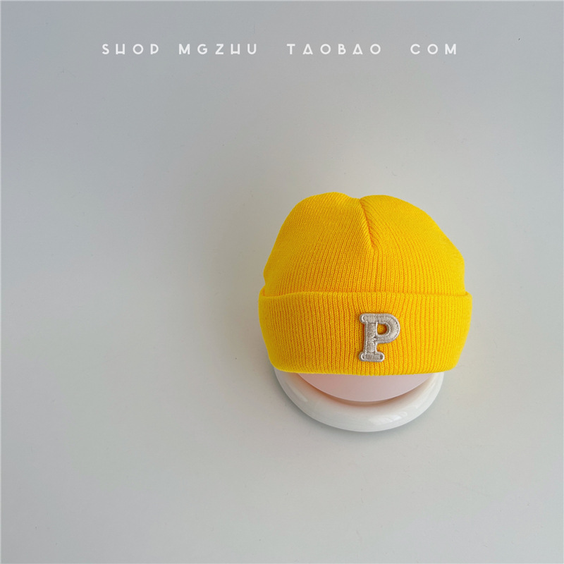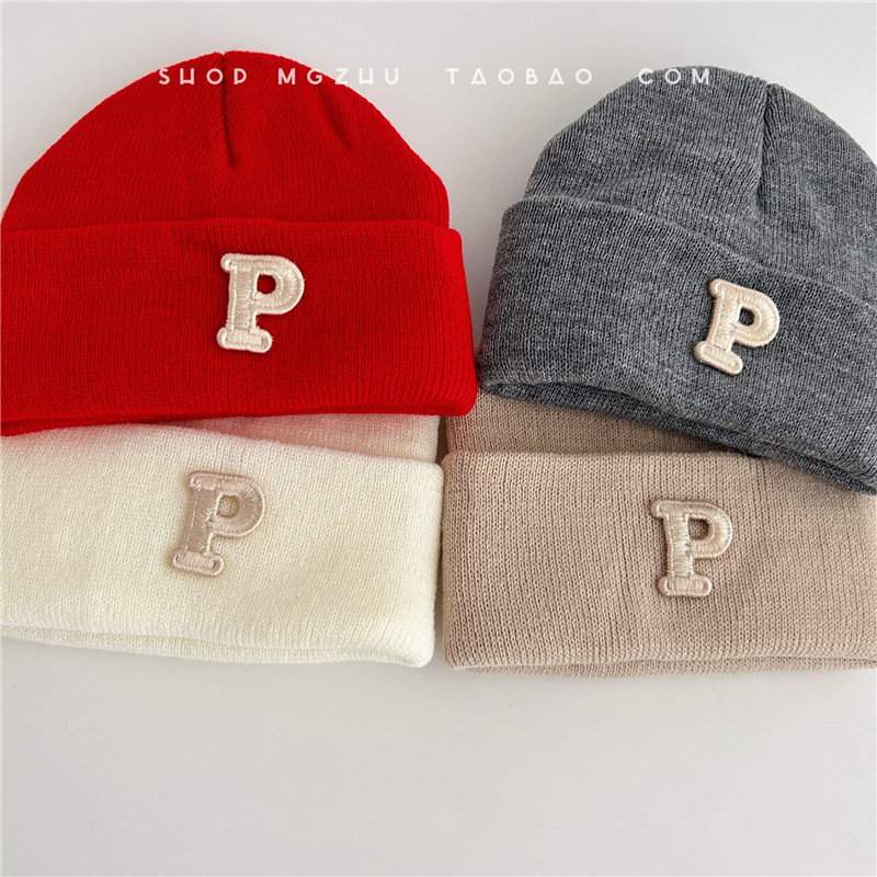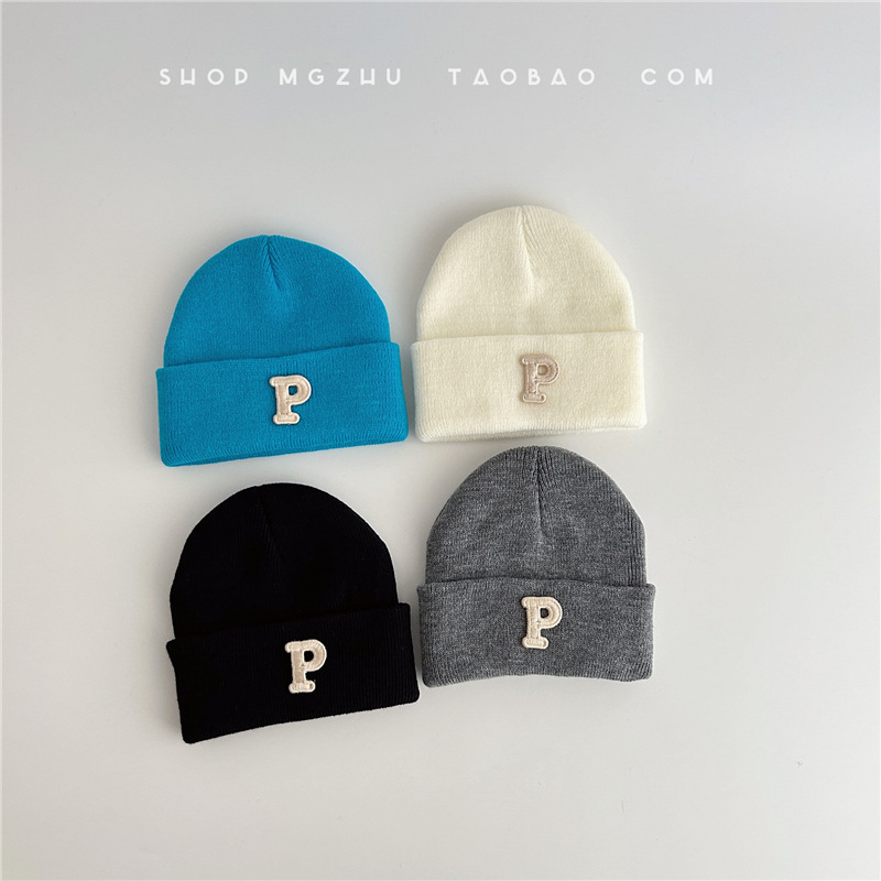 아기 모자 가을과 겨울 아기 따뜻한 풀오버 모자 한국 편지 P 유아 더블 울 모자 트렌디