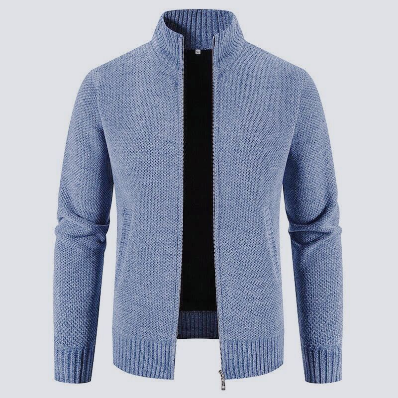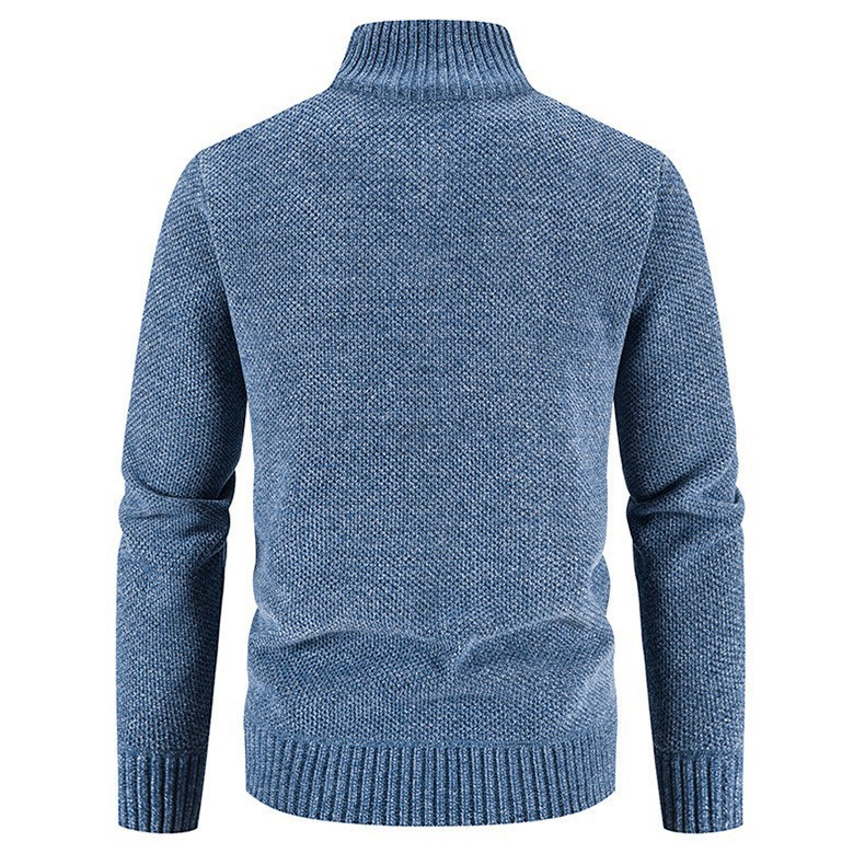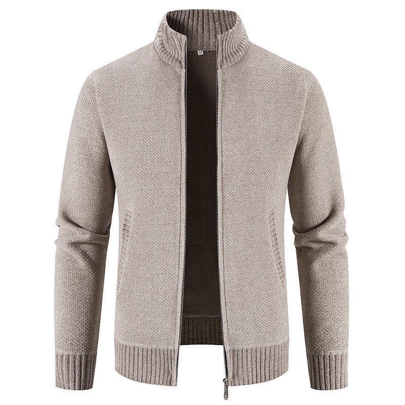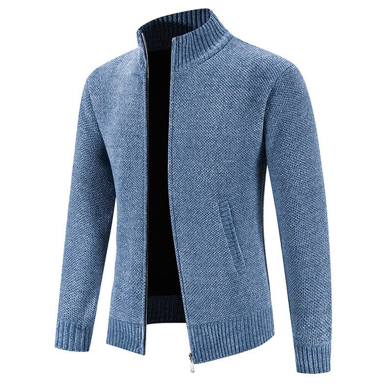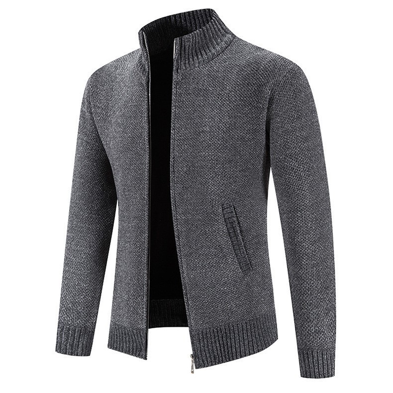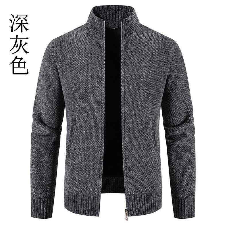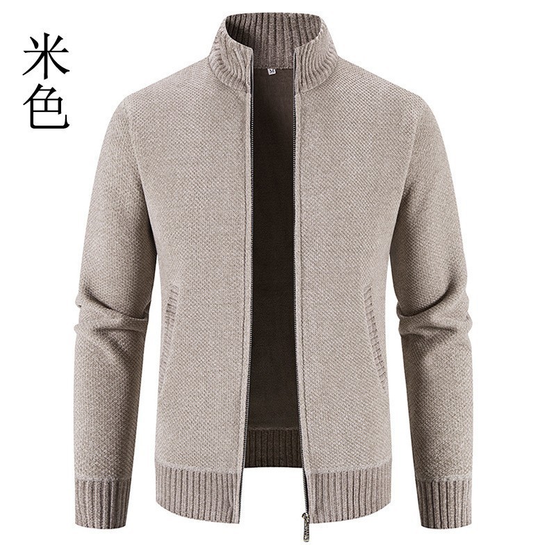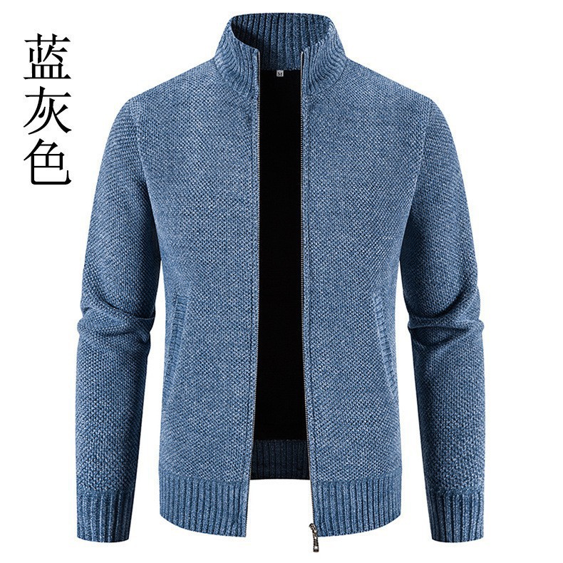 새로운 대외 무역 남자 지퍼 카디건 기모 니트 스웨터 한국 슬림 핏 칼라 재킷 솔리드 컬러 스웨터 재킷스토어 가기
