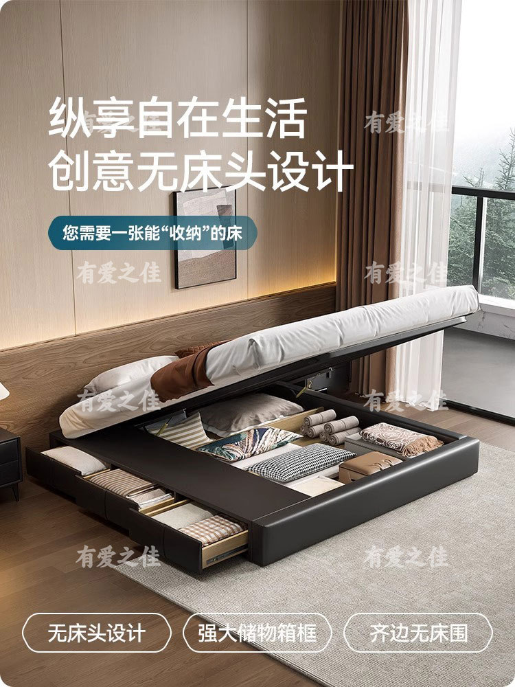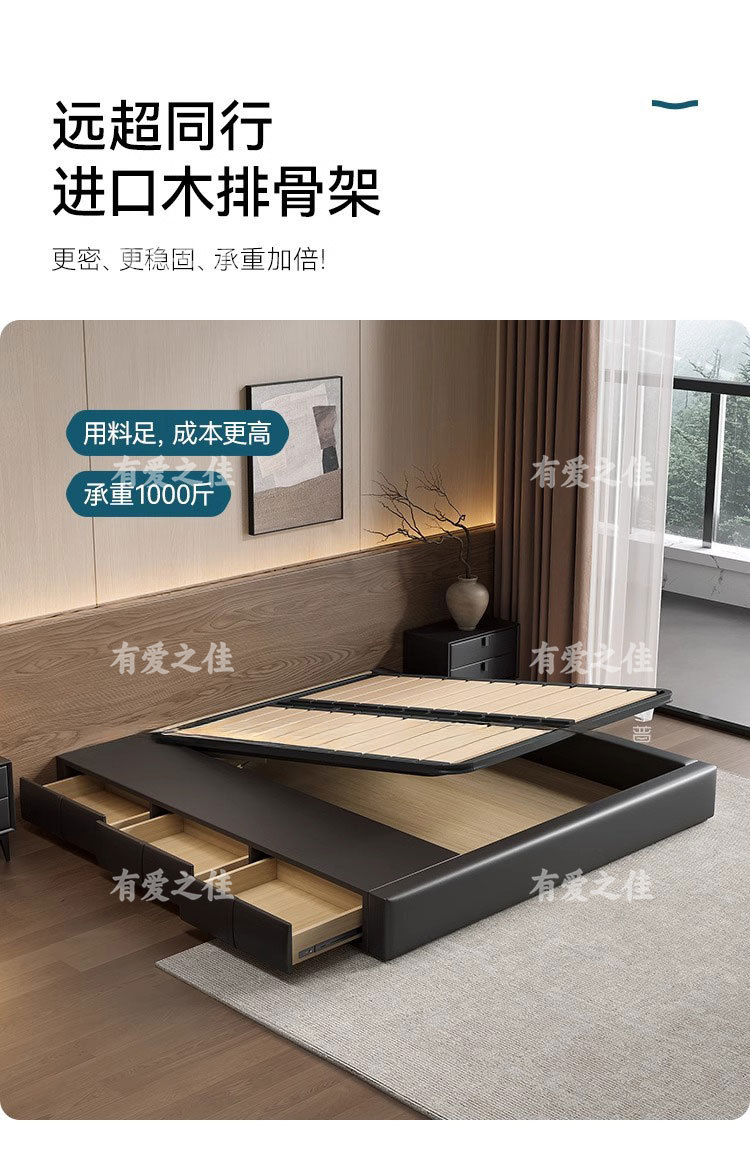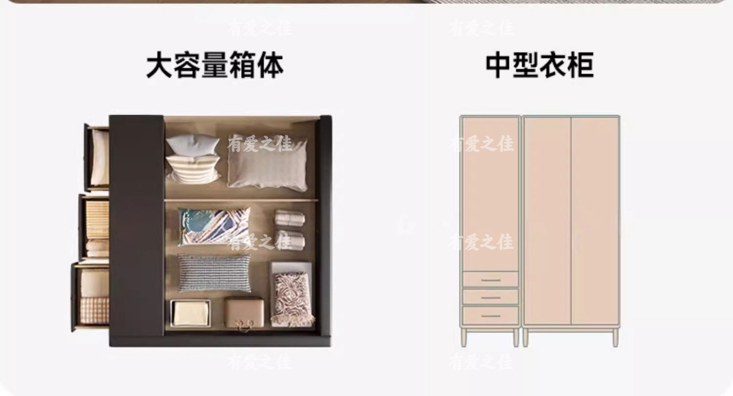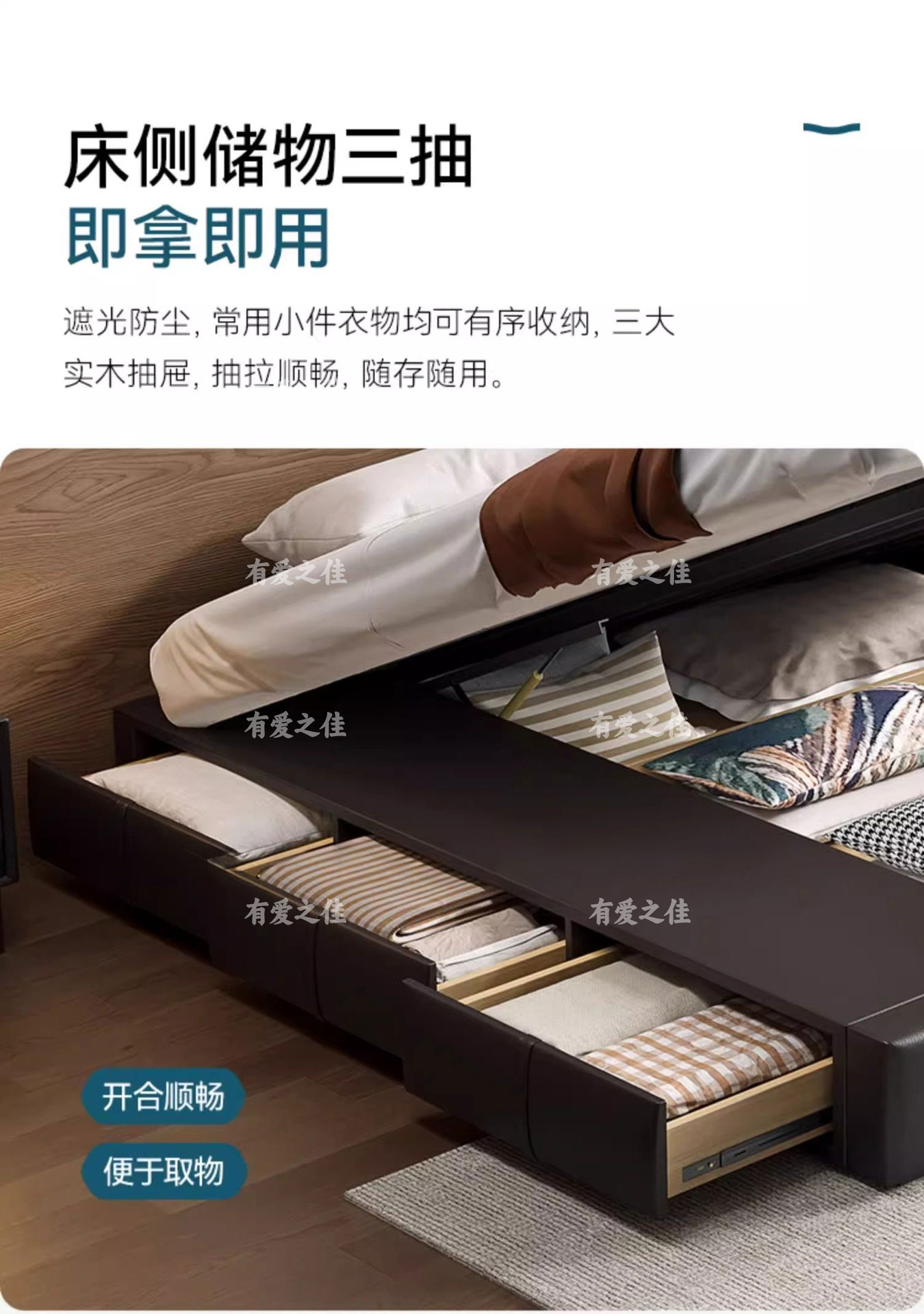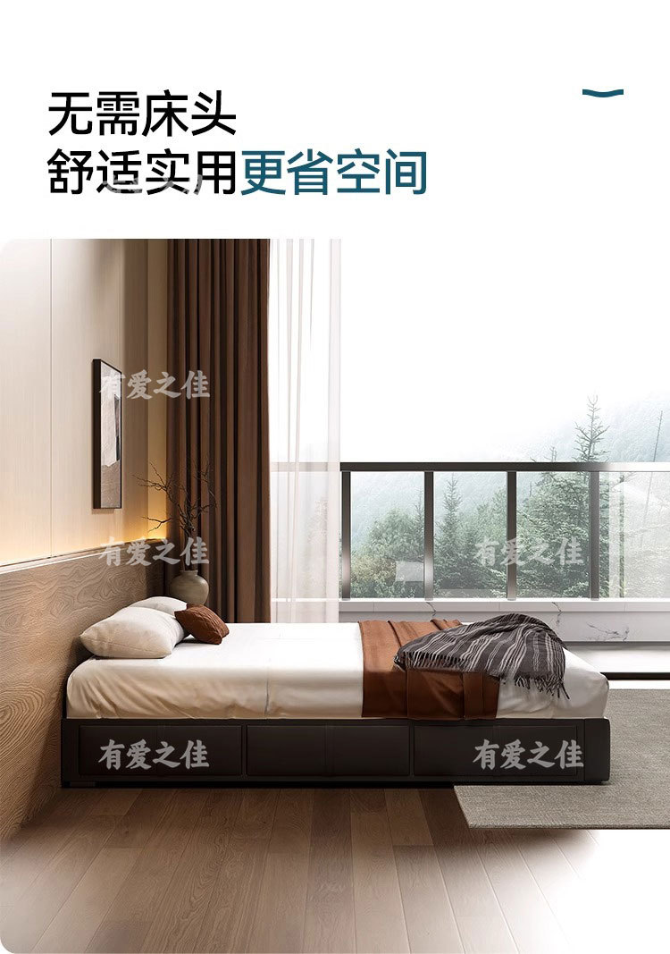 헤드 사이드 침대 없음 이탈리아 미니멀리스트 3 서랍 높은 상자 저장 소형 아파트 가장자리 더블 솔리드 우드 마스터 침실 퀸 침대스토어 가기