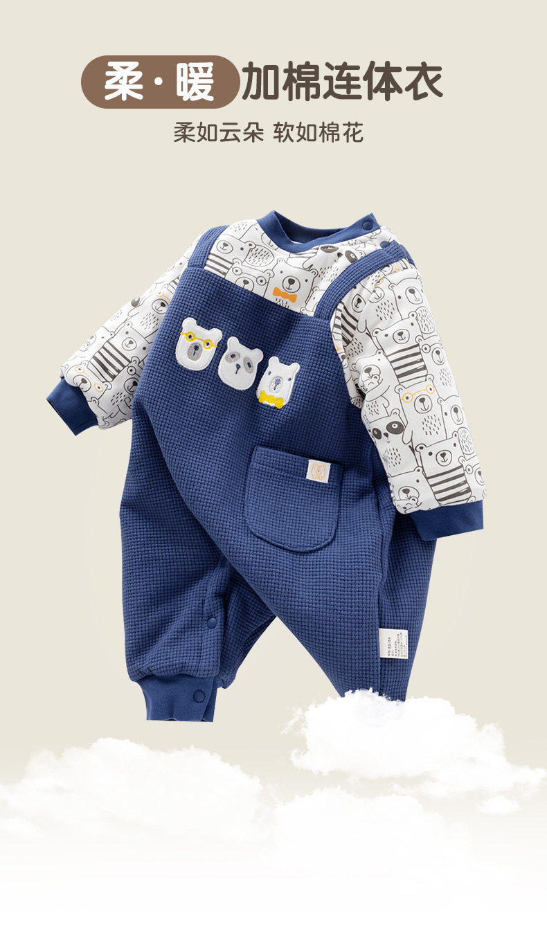 아기의 한 조각 면화-패딩 된 가짜 두 조각 긴 소매 모자 가을과 겨울 아기 옷 아기 등반 옷 따뜻한 겨울 옷스토어 가기