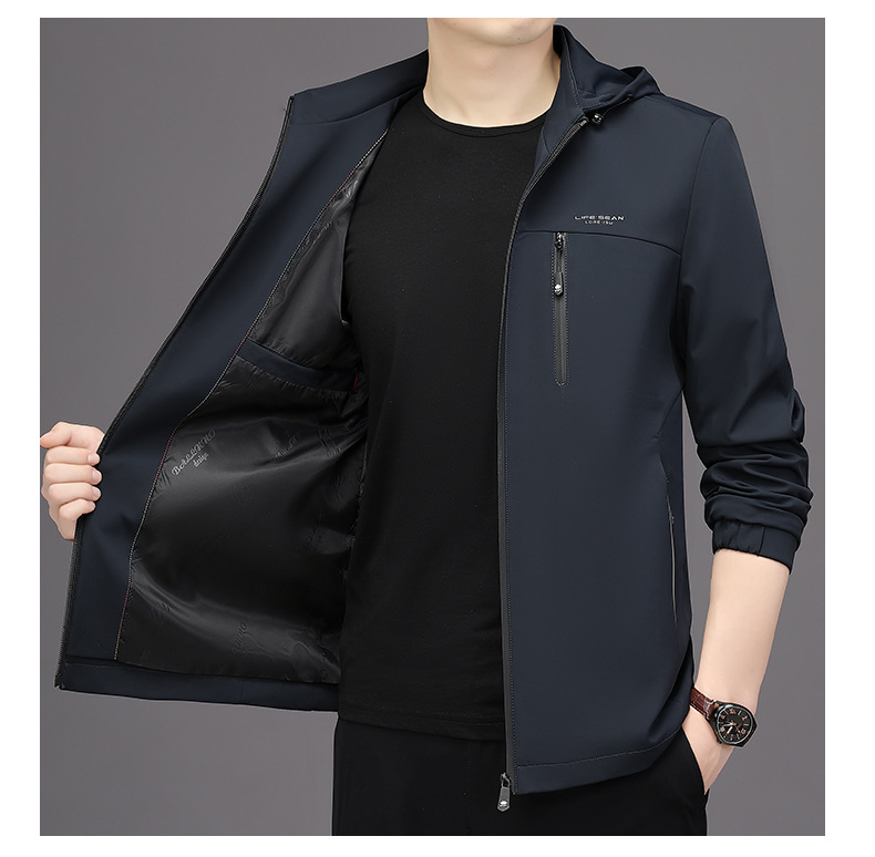 2025 신상 남성 봄 비즈니스 캐주얼 후드 봄가을 중년 남성 재킷 코트 상의 남성복 도매스토어 가기
