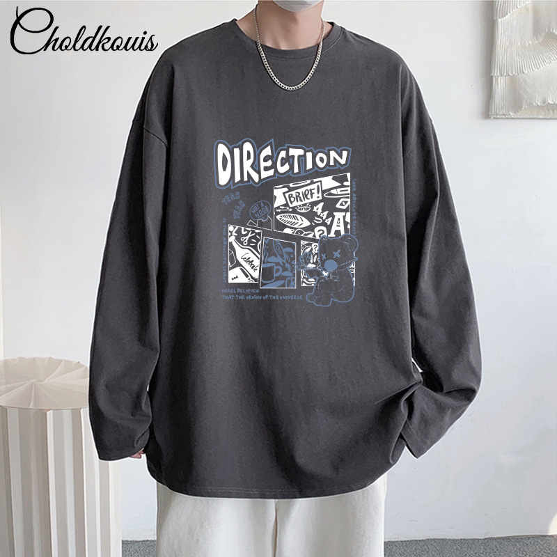 헤비 200g 코튼 티셔츠 남성 봄 패션 브랜드 레트로 솔리드 컬러 롱 슬리브 베이스 셔츠 아메리칸 루즈 올 매치 티셔츠스토어 가기
