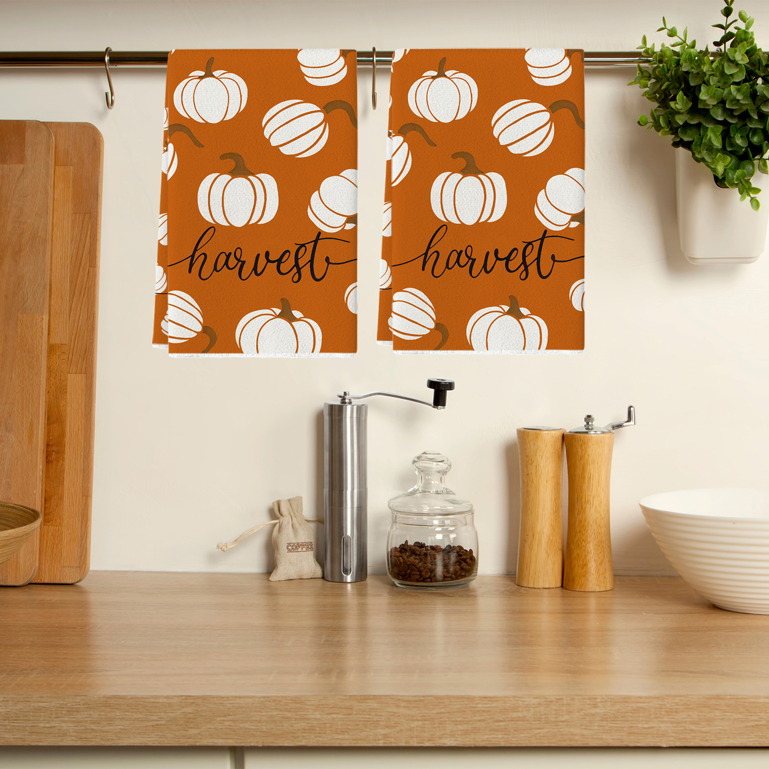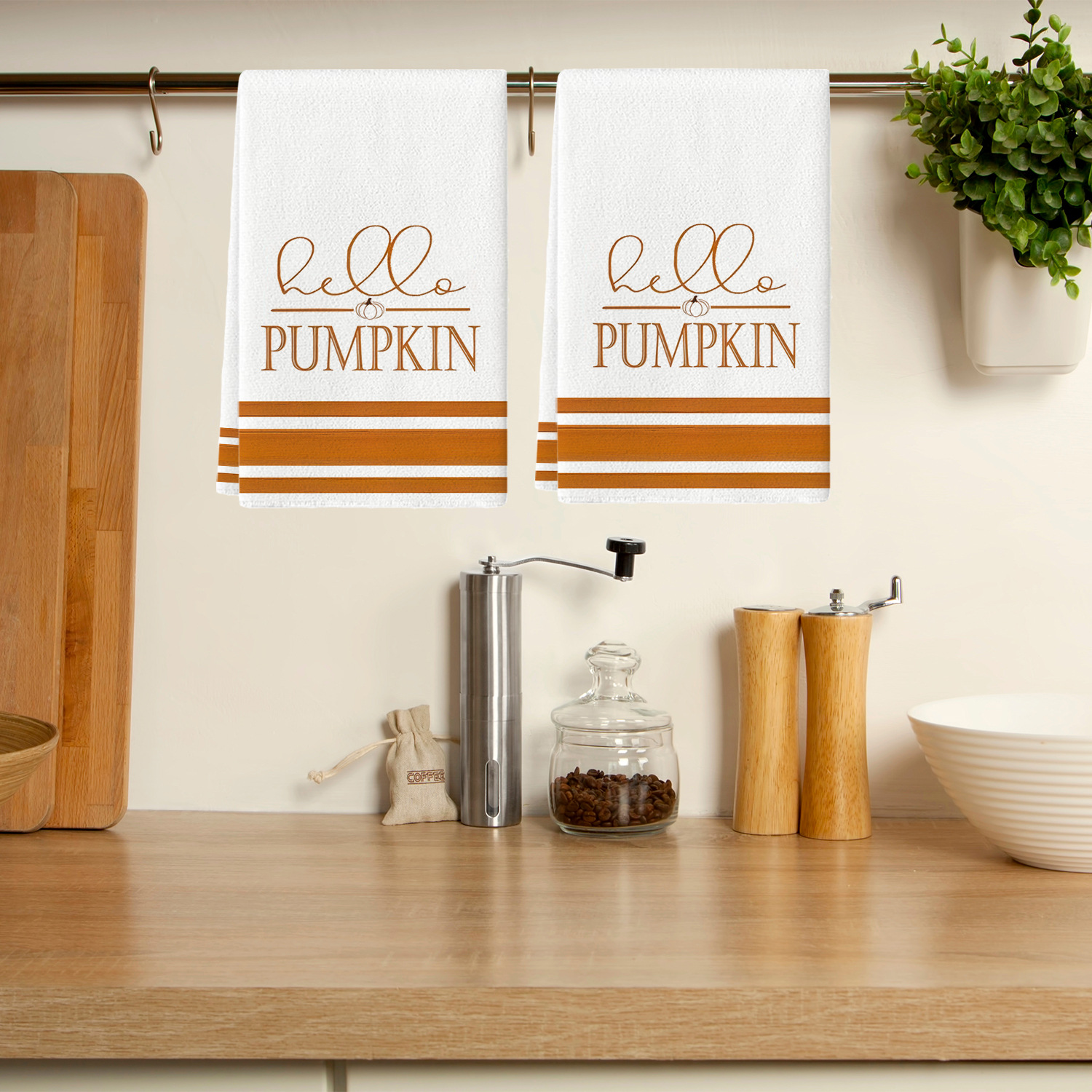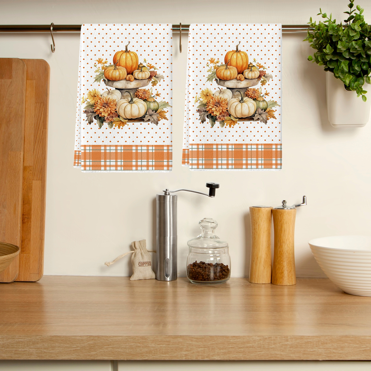 호박 줄무늬 주방 수건 메이플 리프 텍스트 식기 세척 수건 주방 식기 세척 수건 욕실 손 수건스토어 가기