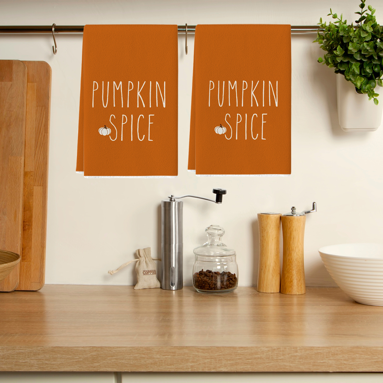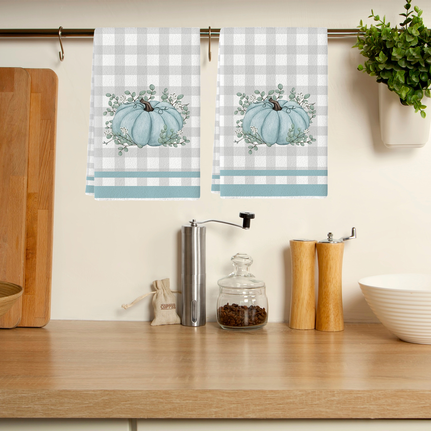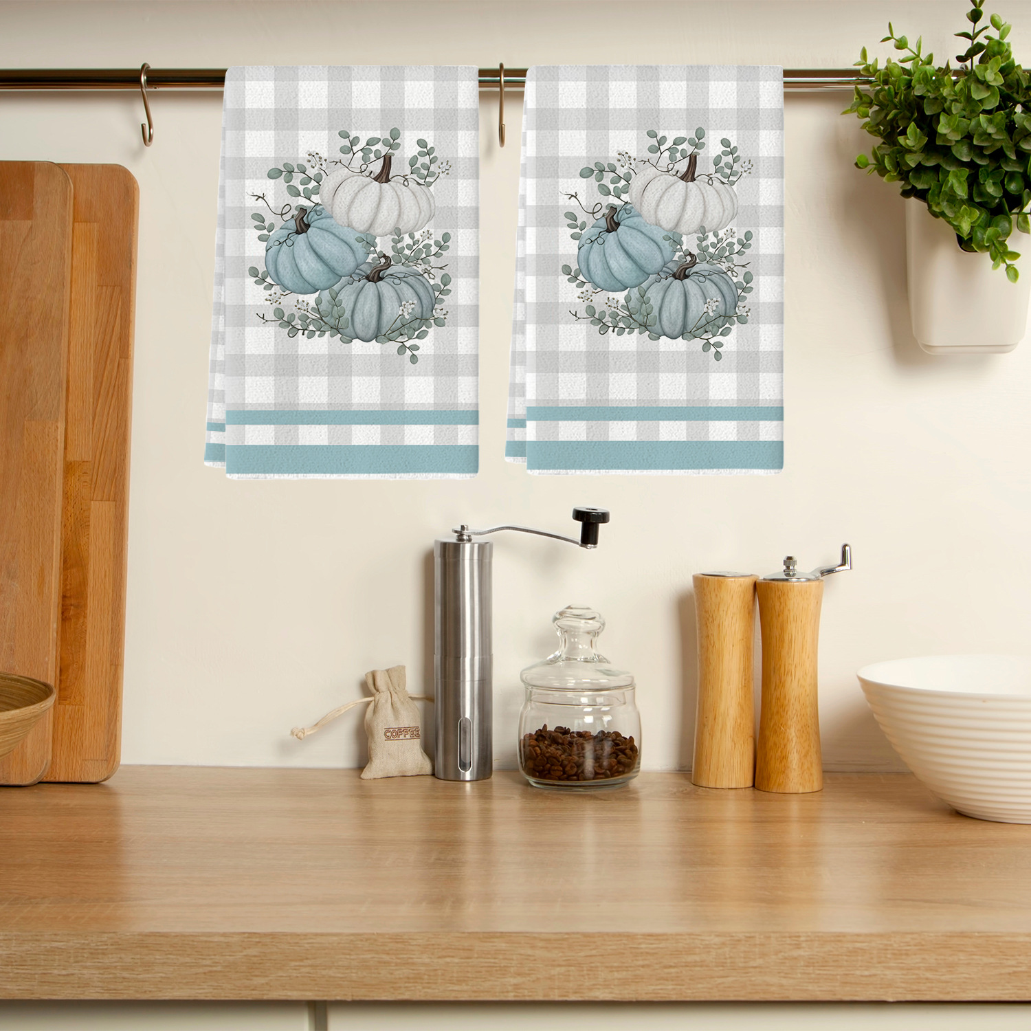 호박 줄무늬 주방 수건 메이플 리프 텍스트 식기 세척 수건 주방 식기 세척 수건 욕실 손 수건스토어 가기