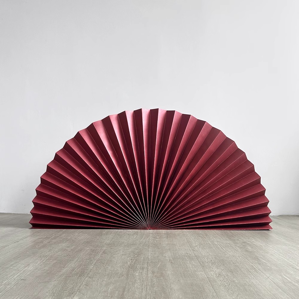 折叠工艺扇摆件拍照婚庆美陈橱窗道具红色折纸半圆扇子装饰纸扇花