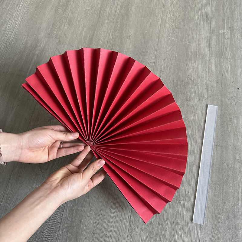 접이식 공예 팬 장식품 사진 웨딩 쇼 창 소품 빨간 종이 접기 반원형 팬 장식 종이 팬 꽃