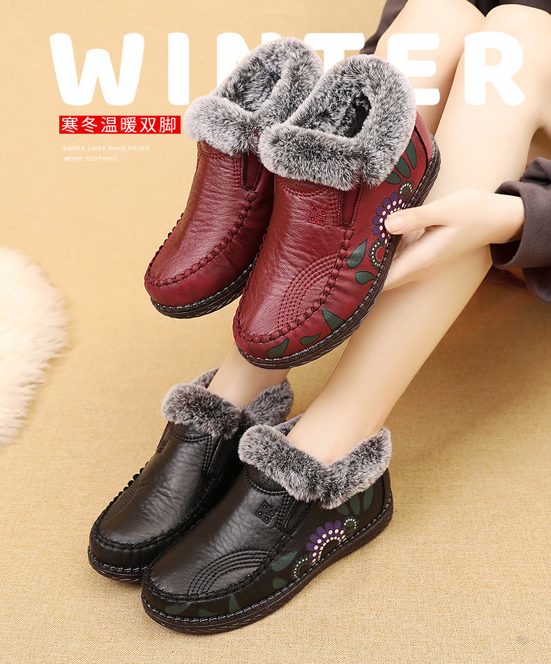 노인의 면화 여성 겨울 미끄럼 방지 방수 오래 된 베이징 천 신발 기모 따뜻한 중년 및 노인 할머니 엄마 신발스토어 가기