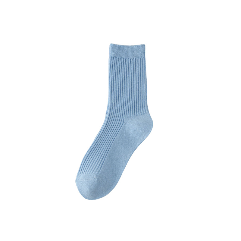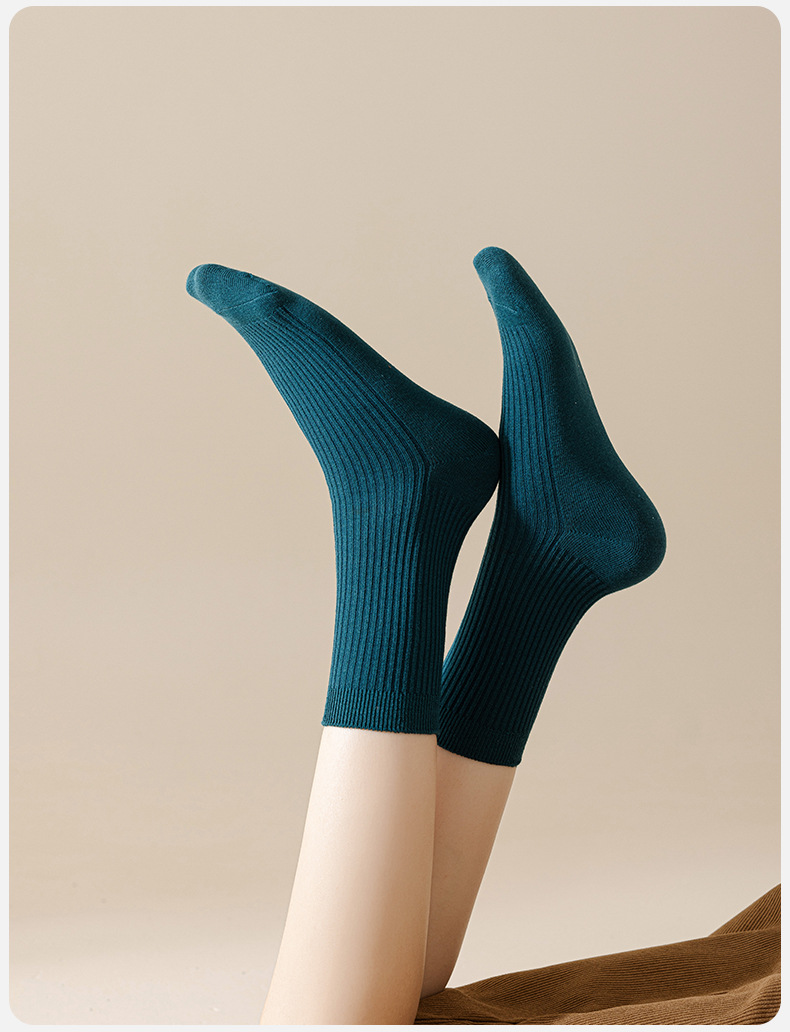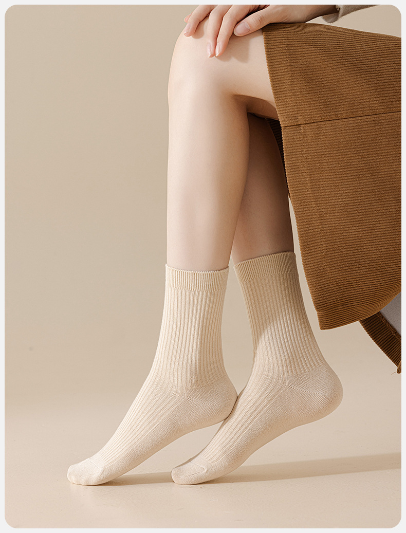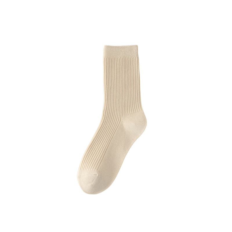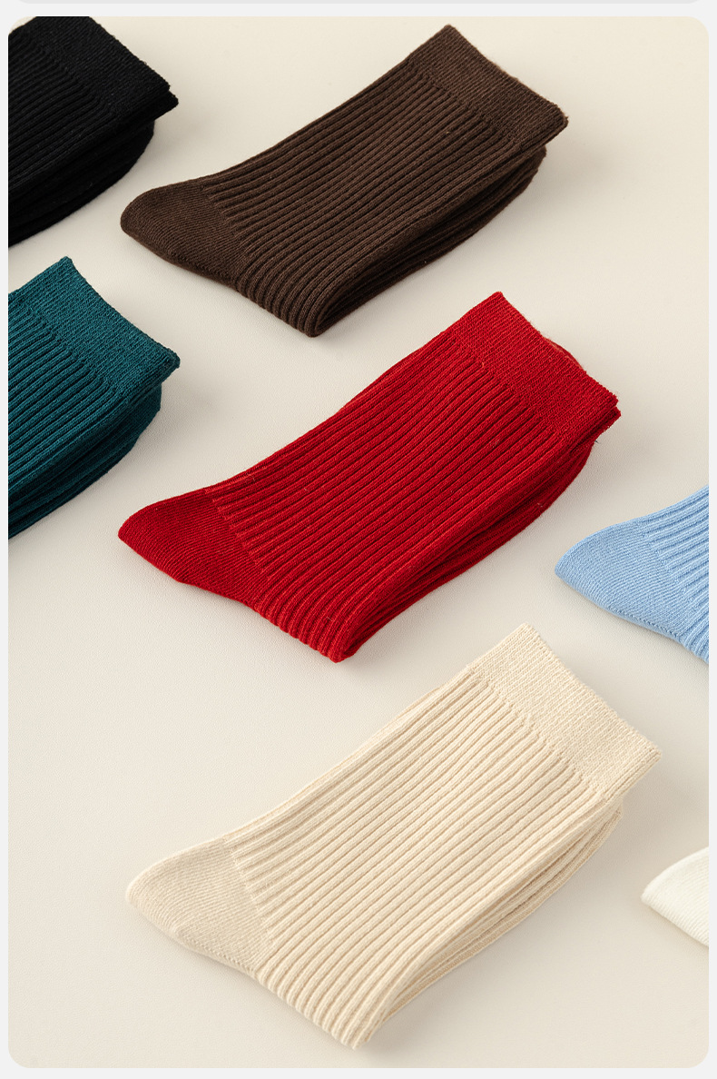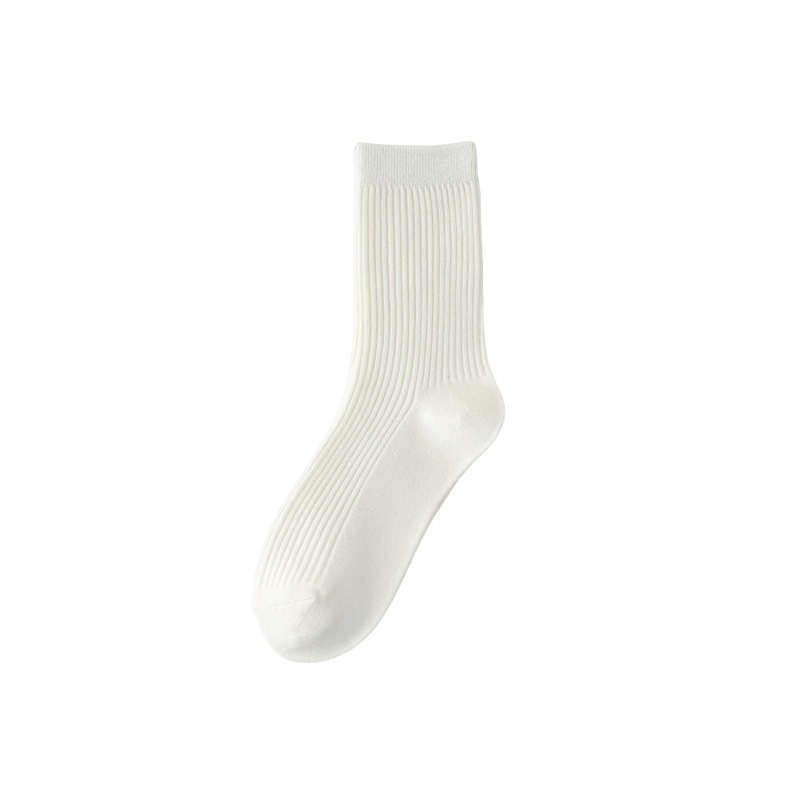 여성용 양말 봄, 가을 더블 바늘 빗질면 양말 단색 기본 다용도 종아리 양말 일본 및 한국 스타일 심플 캐주얼 양말