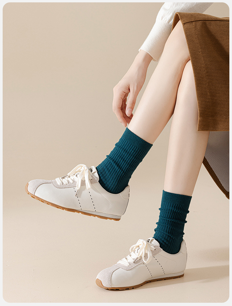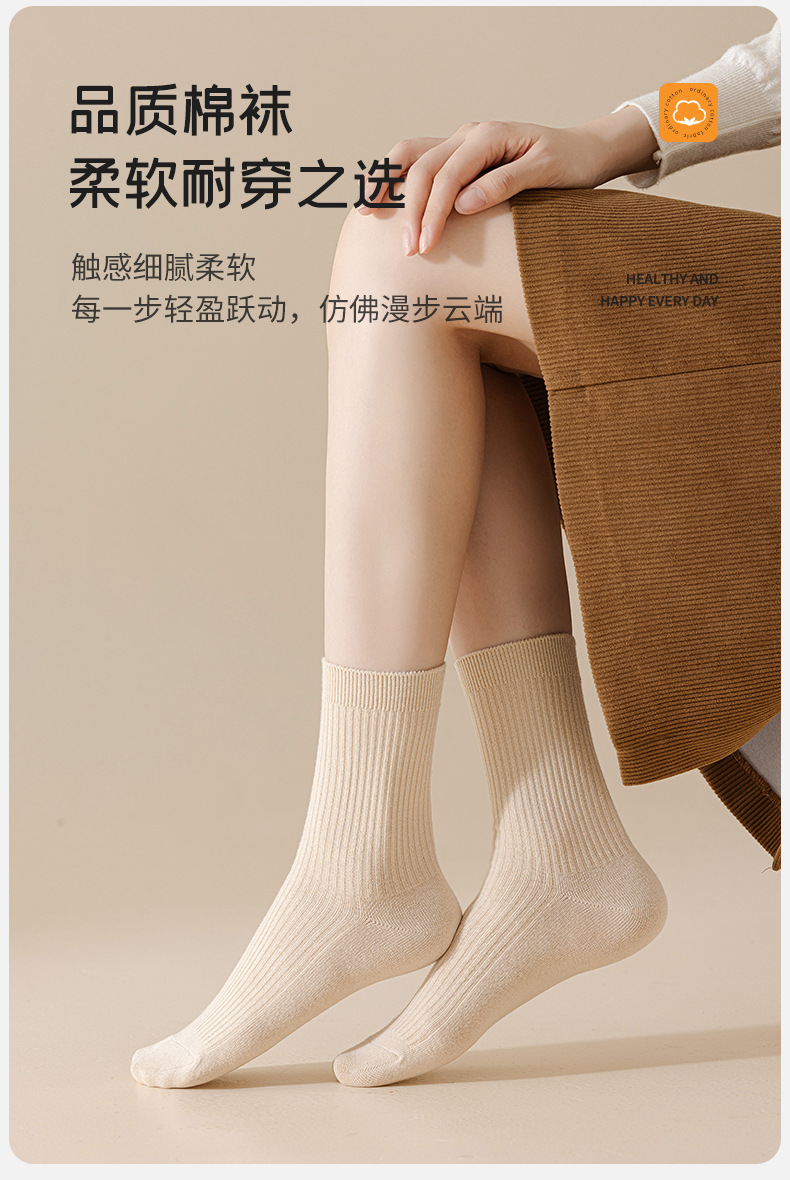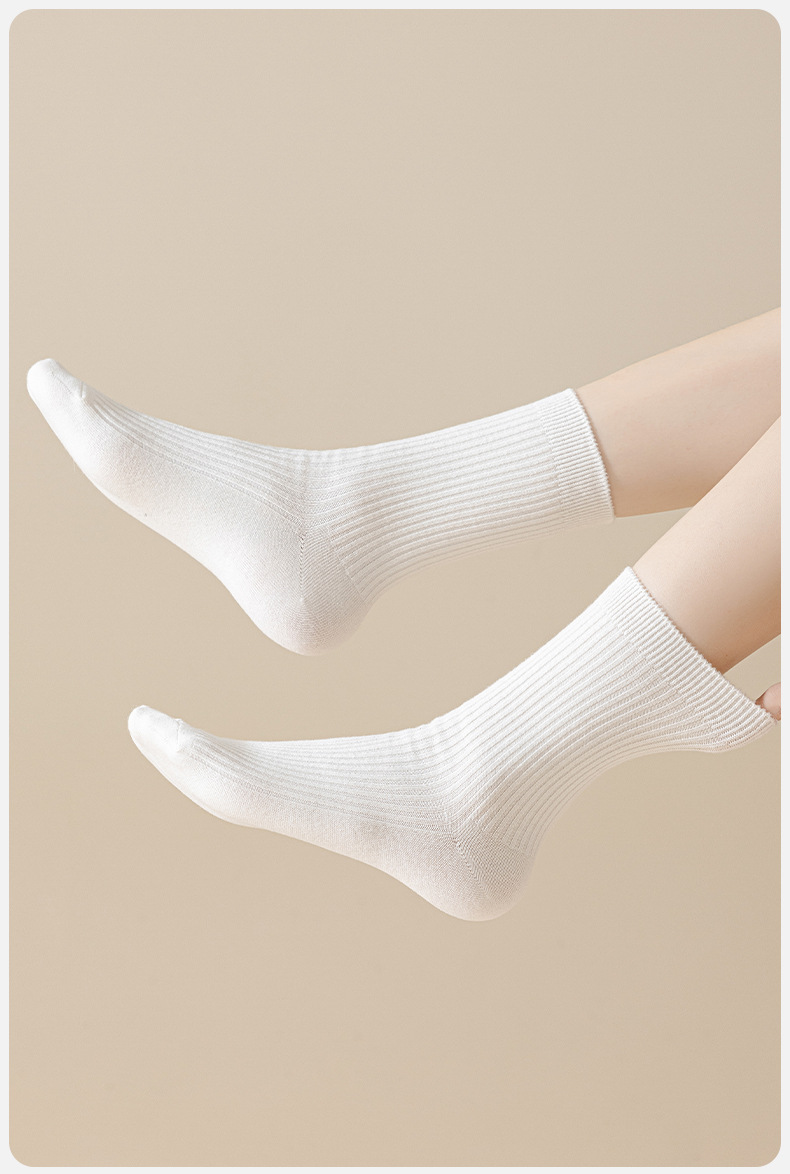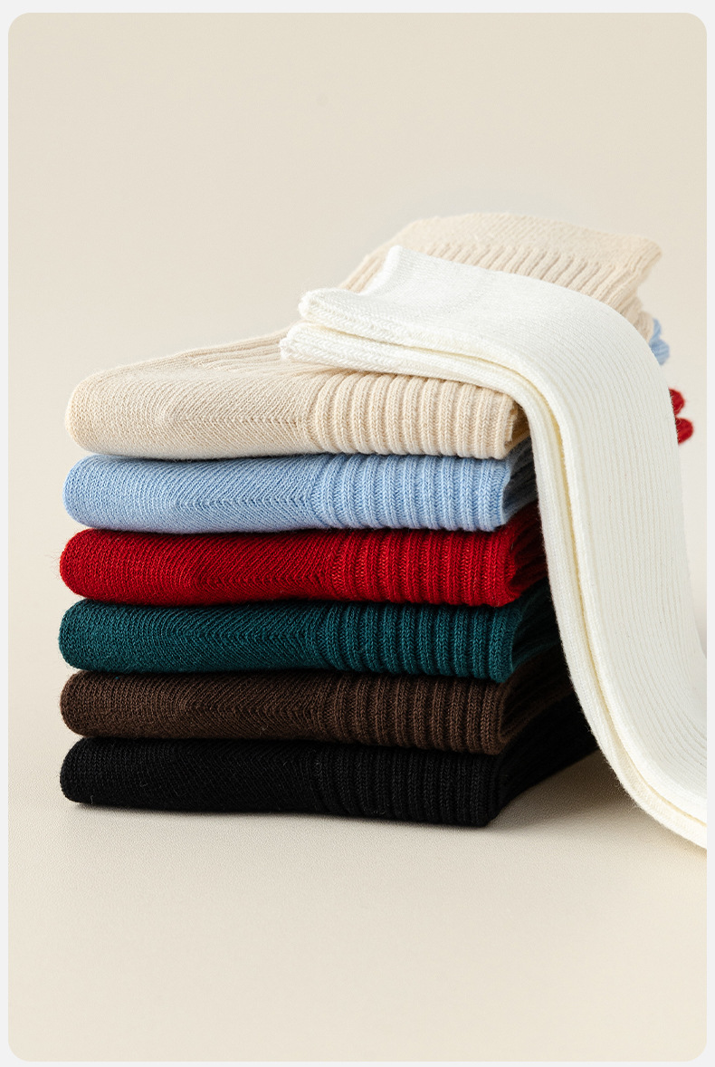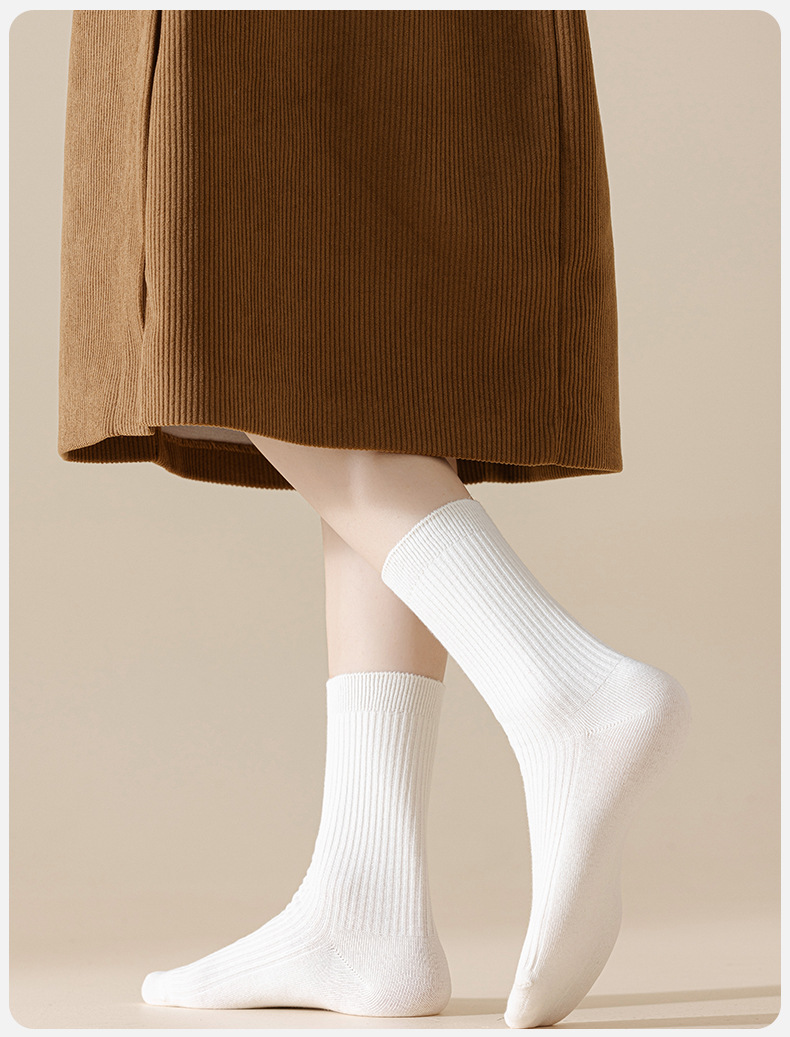 여성용 양말 봄, 가을 더블 바늘 빗질면 양말 단색 기본 다용도 종아리 양말 일본 및 한국 스타일 심플 캐주얼 양말