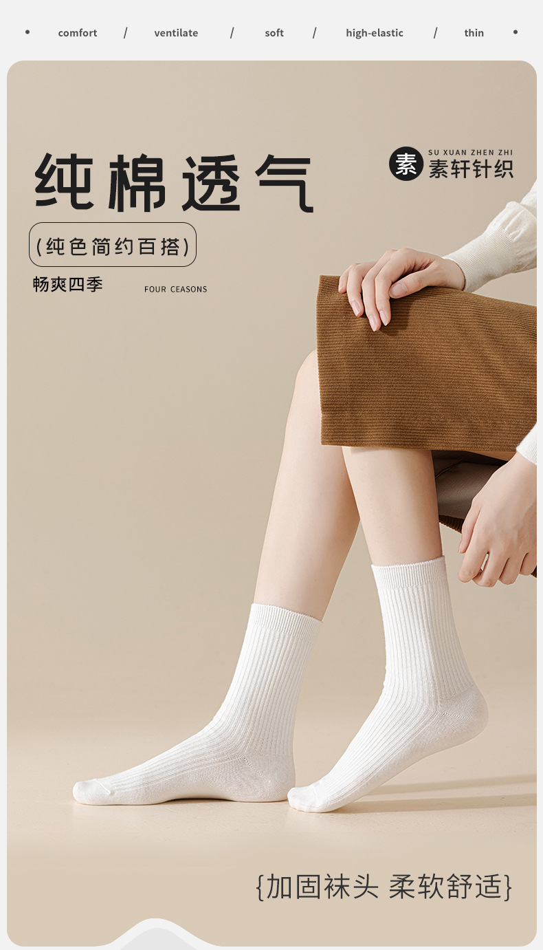 여성용 양말 봄, 가을 더블 바늘 빗질면 양말 단색 기본 다용도 종아리 양말 일본 및 한국 스타일 심플 캐주얼 양말스토어 가기