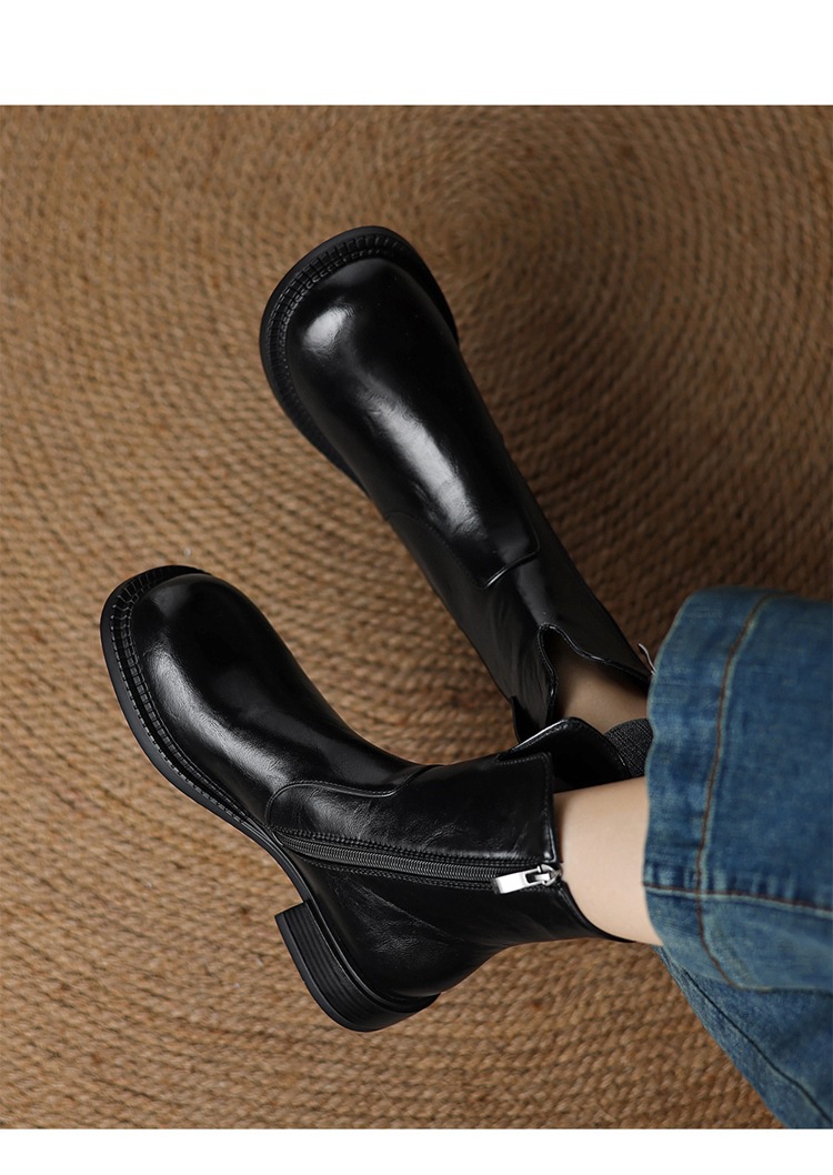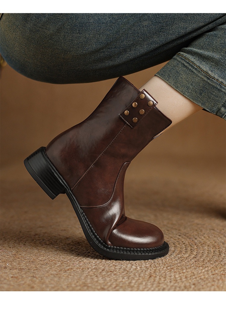 33-43 대형 부츠 레트로 라운드 발가락 웨스턴 부츠 두꺼운 힐 쇼트 부츠 여성용 가을 새 사이드 지퍼 로우 힐 얇은 부츠스토어 가기