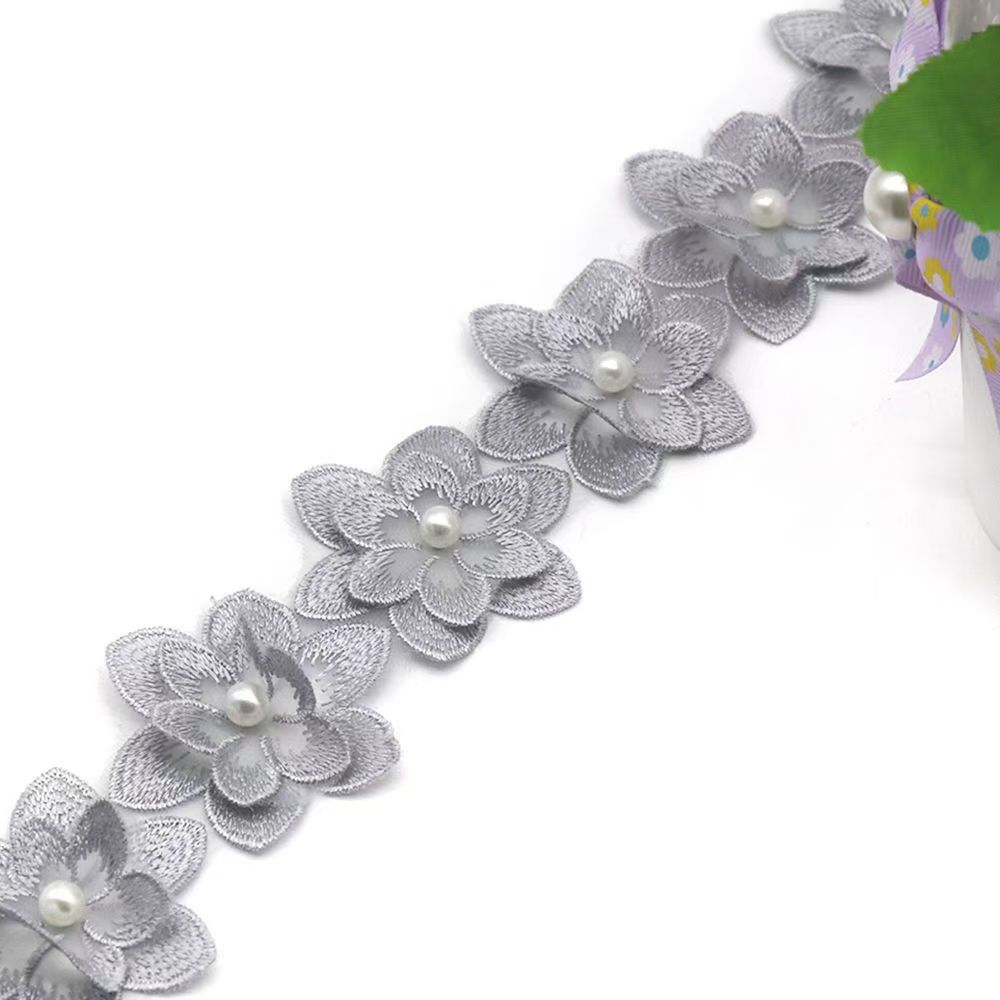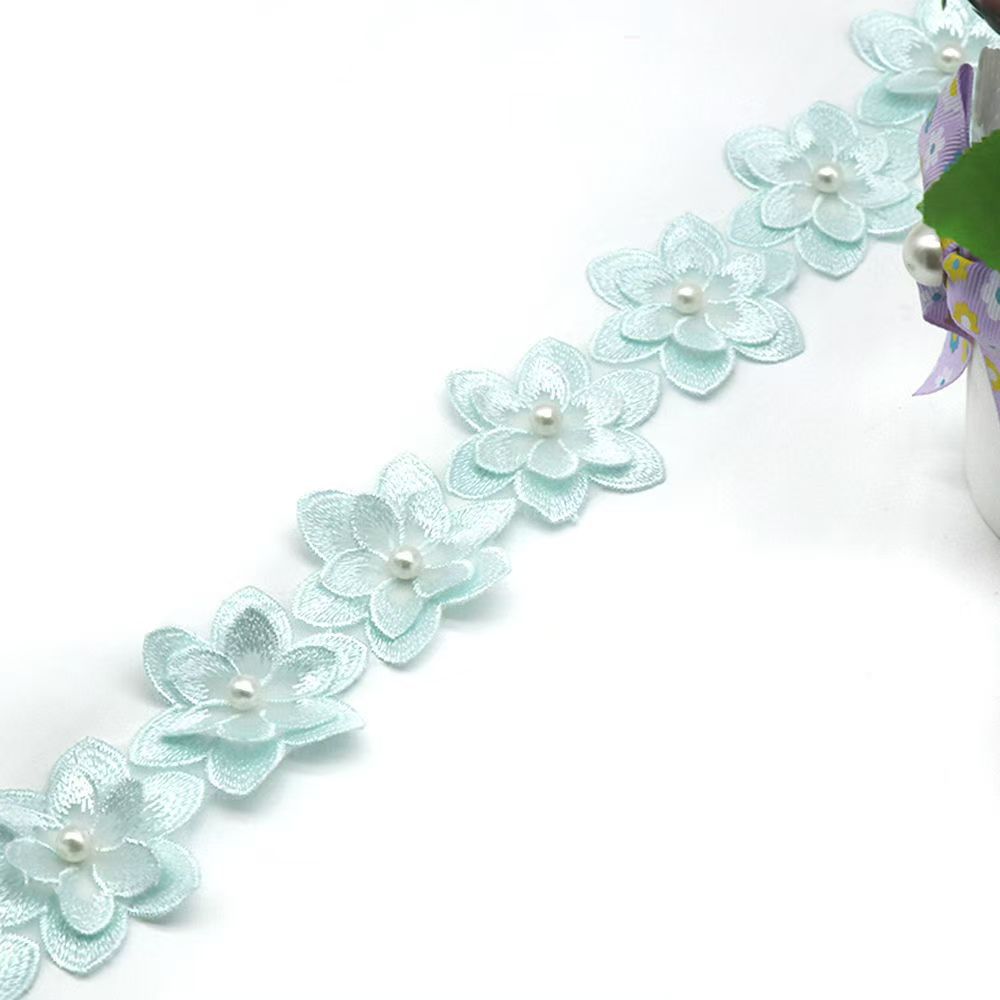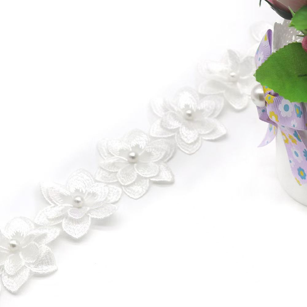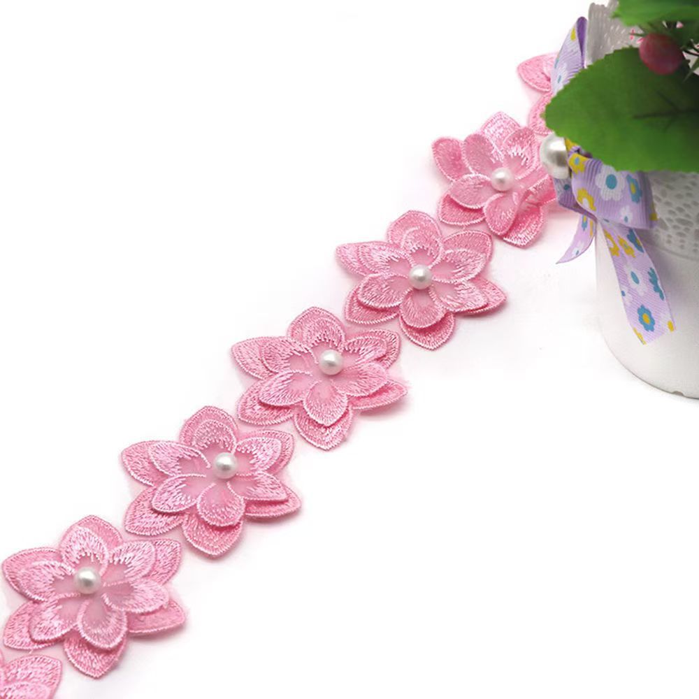 국경 진주 레이스 액세서리 도매 패션 컬러 더블 레이어 6 꽃잎 오간자 수제 구슬 레이스