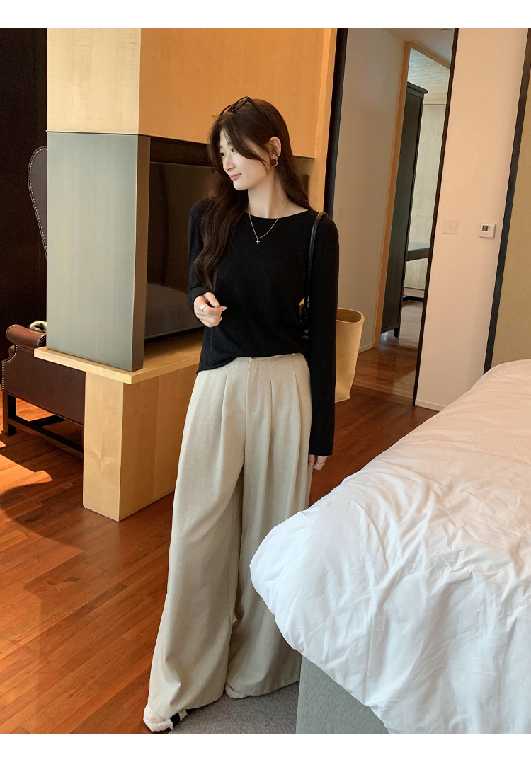 게으르고 편안한 긴팔베이스 니트 스웨터 여성 가을 및 겨울 새로운 라운드 넥 통근 슬림 탑 2024 년