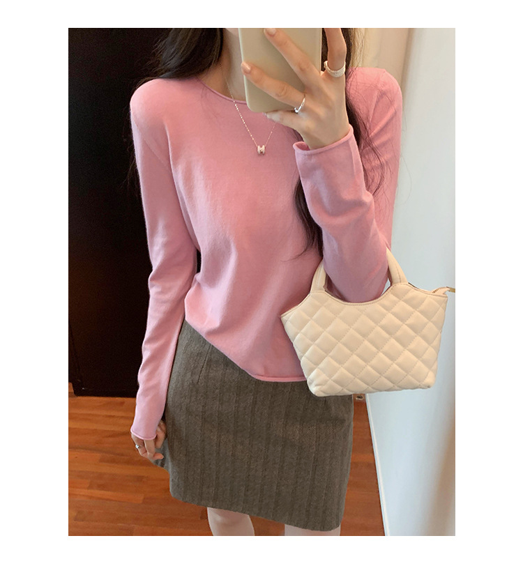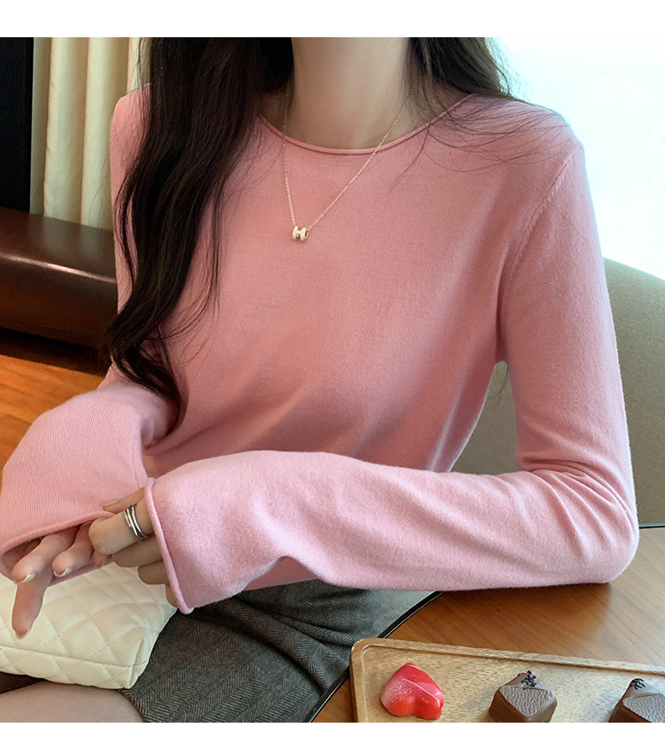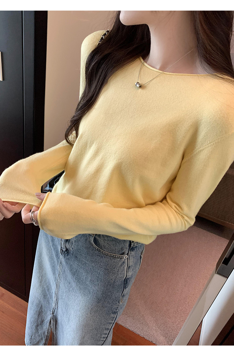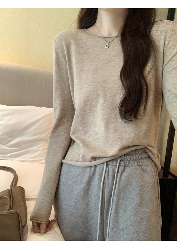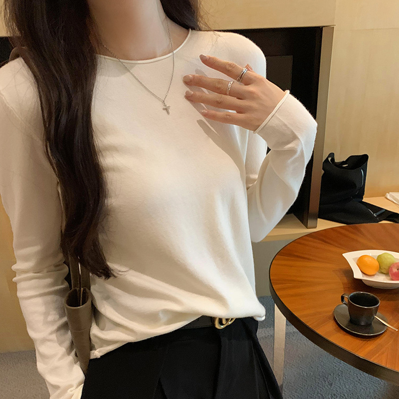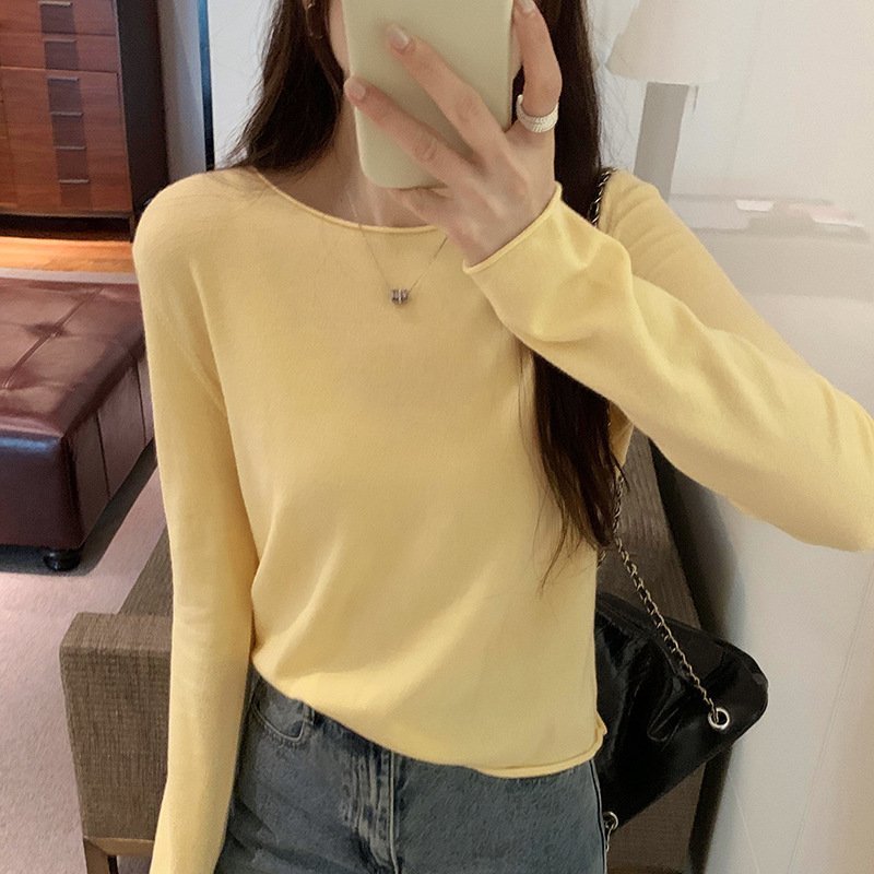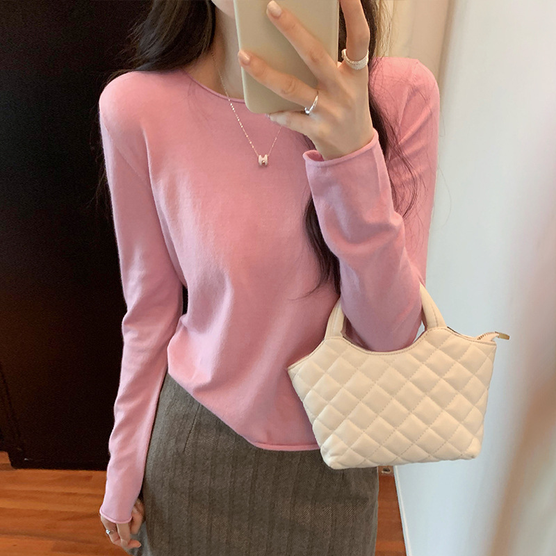 게으르고 편안한 긴팔베이스 니트 스웨터 여성 가을 및 겨울 새로운 라운드 넥 통근 슬림 탑 2024 년스토어 가기