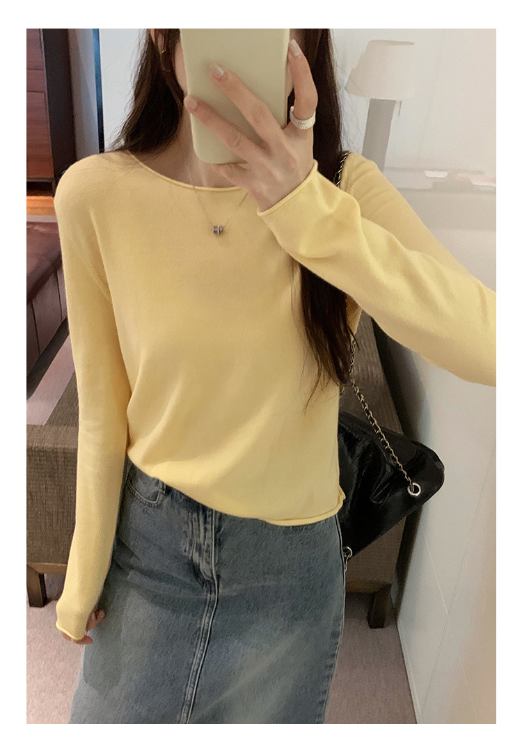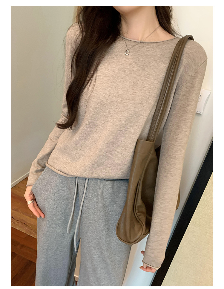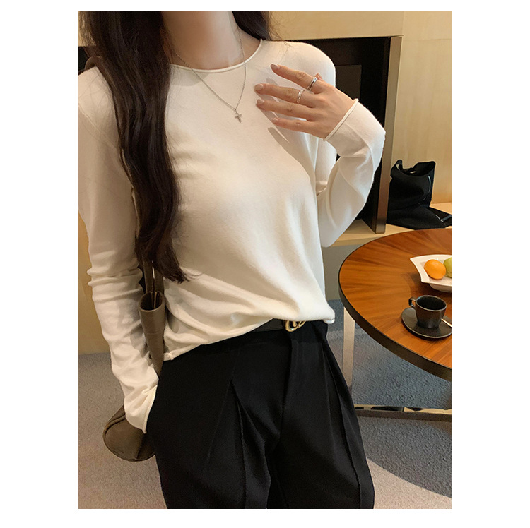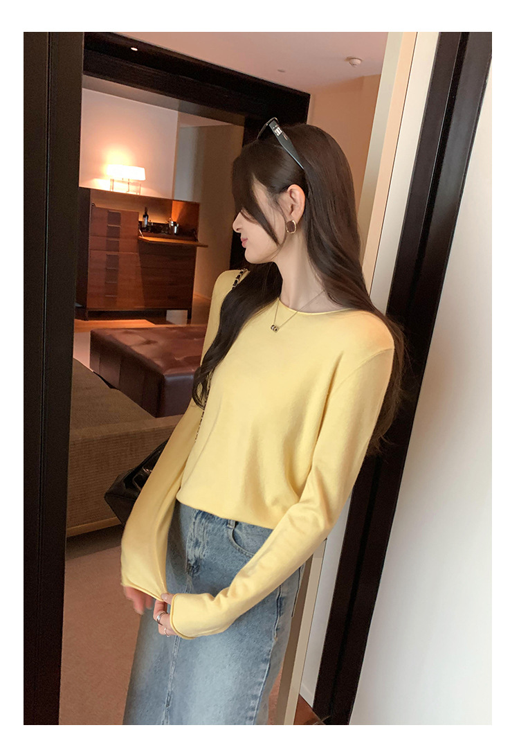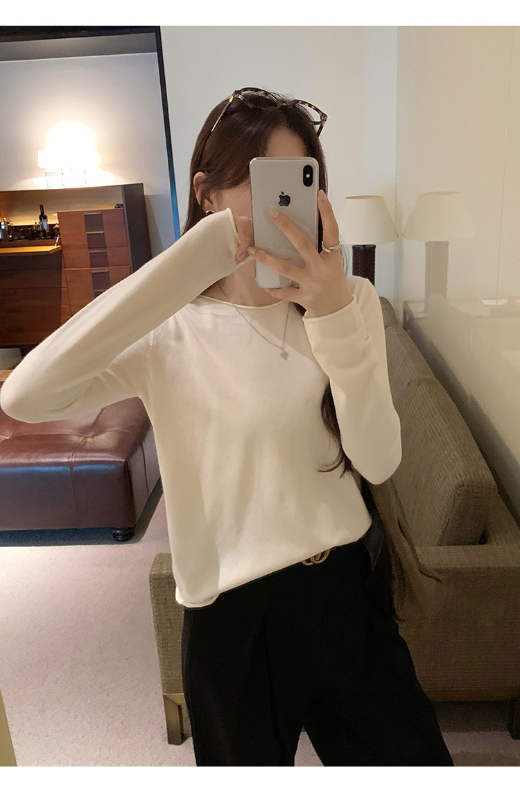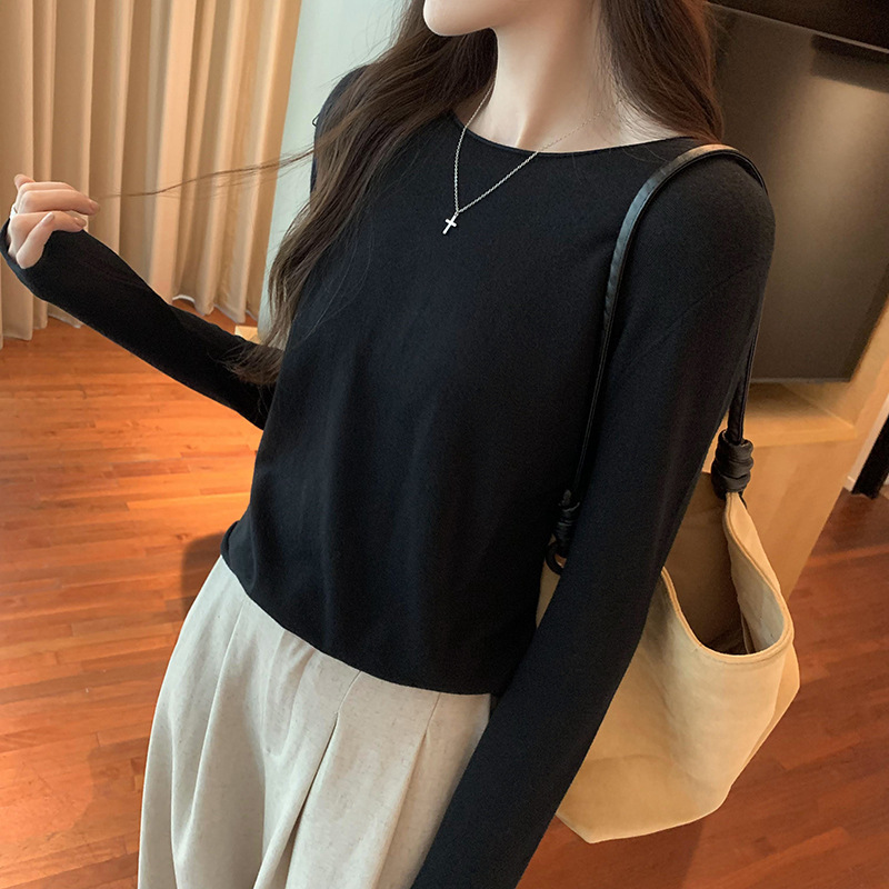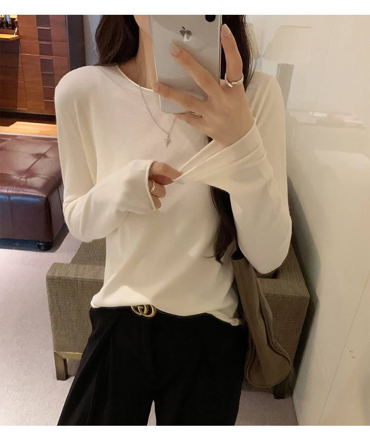 게으르고 편안한 긴팔베이스 니트 스웨터 여성 가을 및 겨울 새로운 라운드 넥 통근 슬림 탑 2024 년스토어 가기