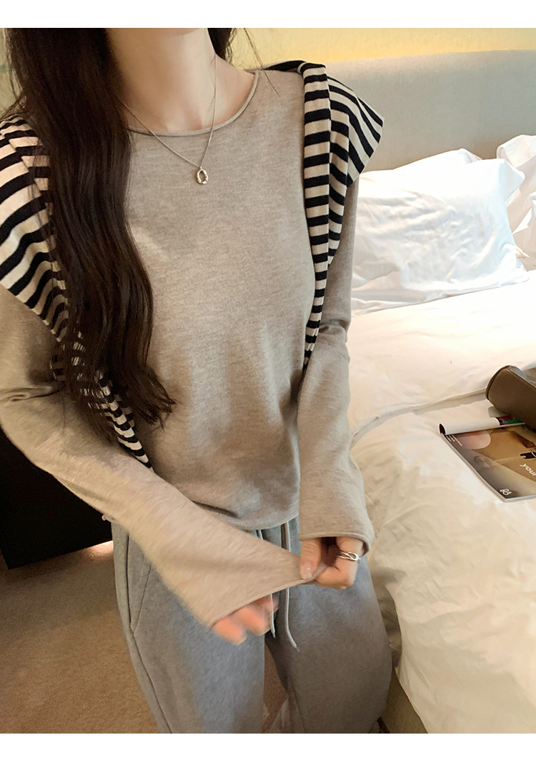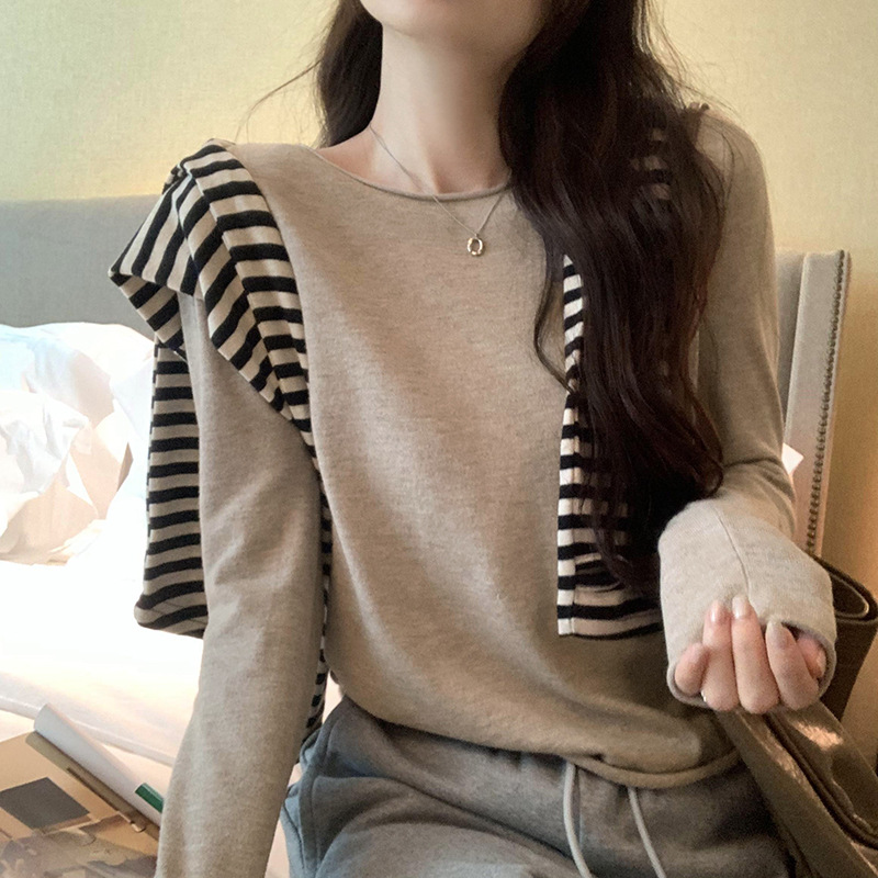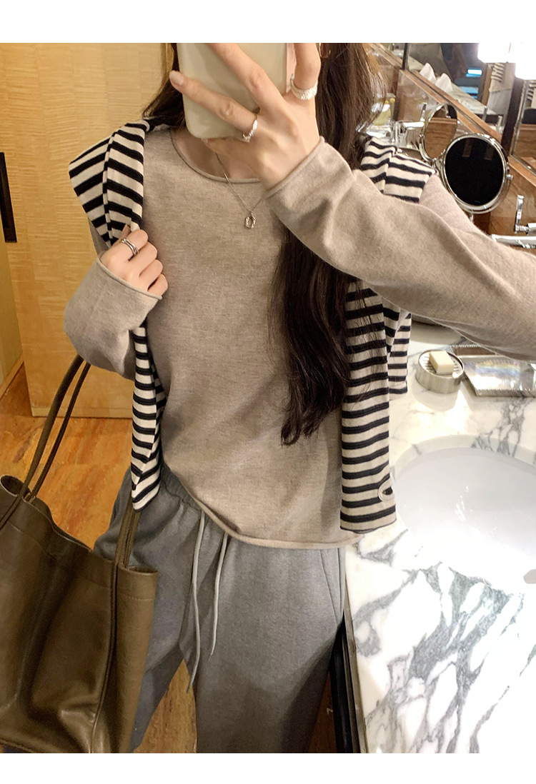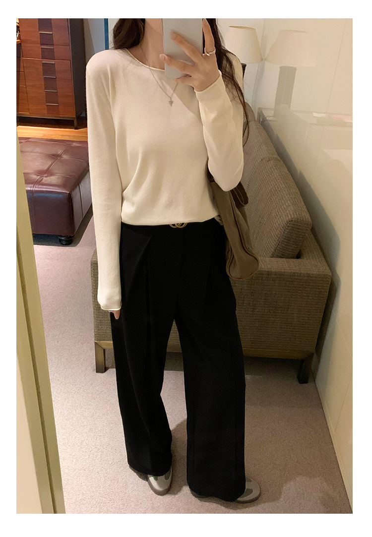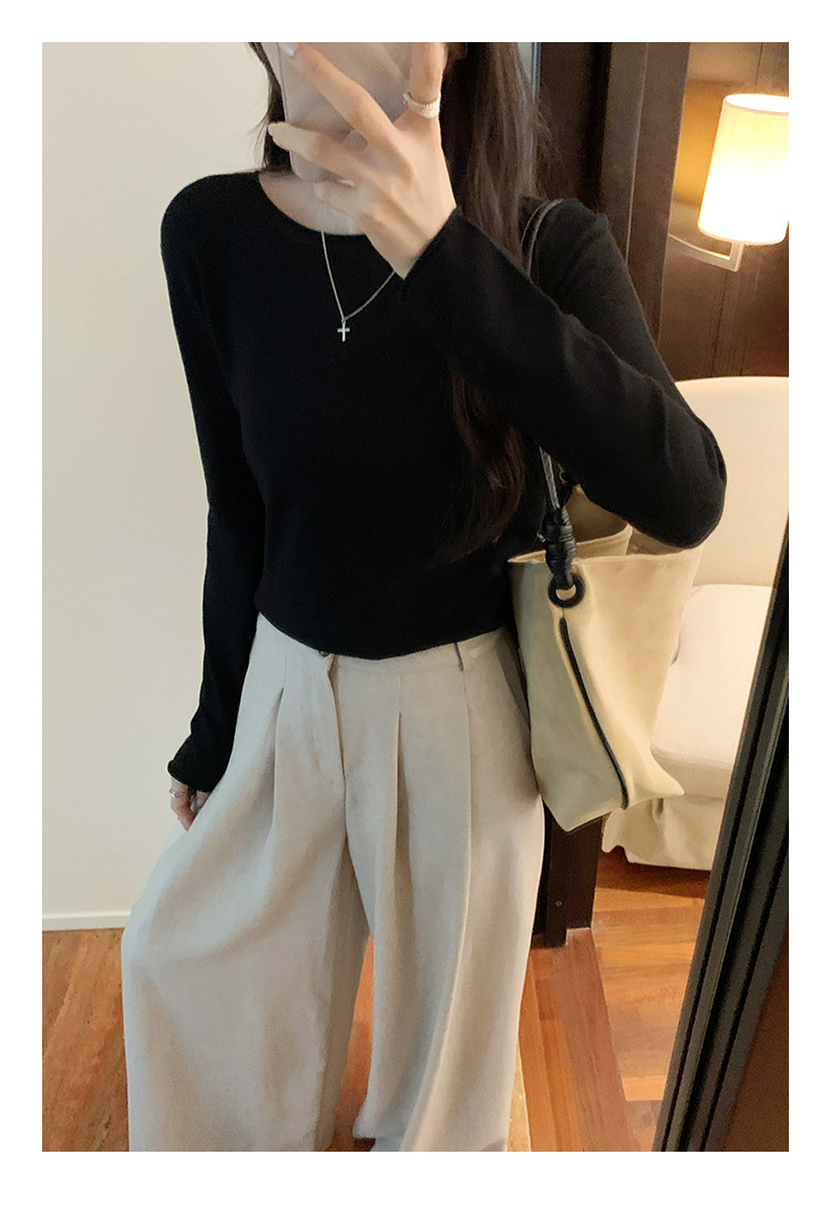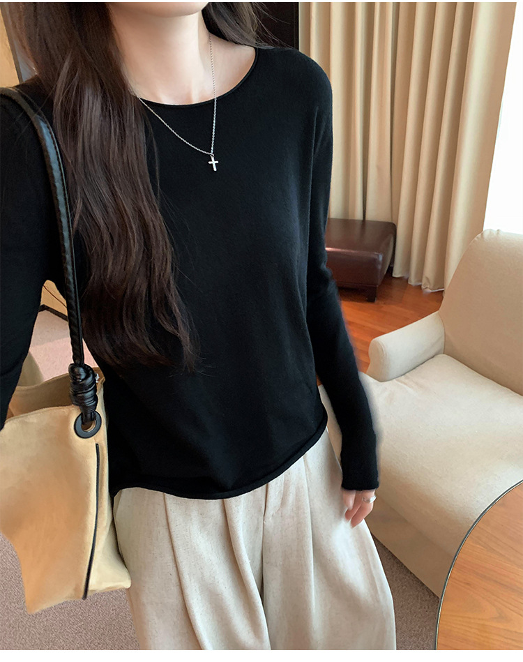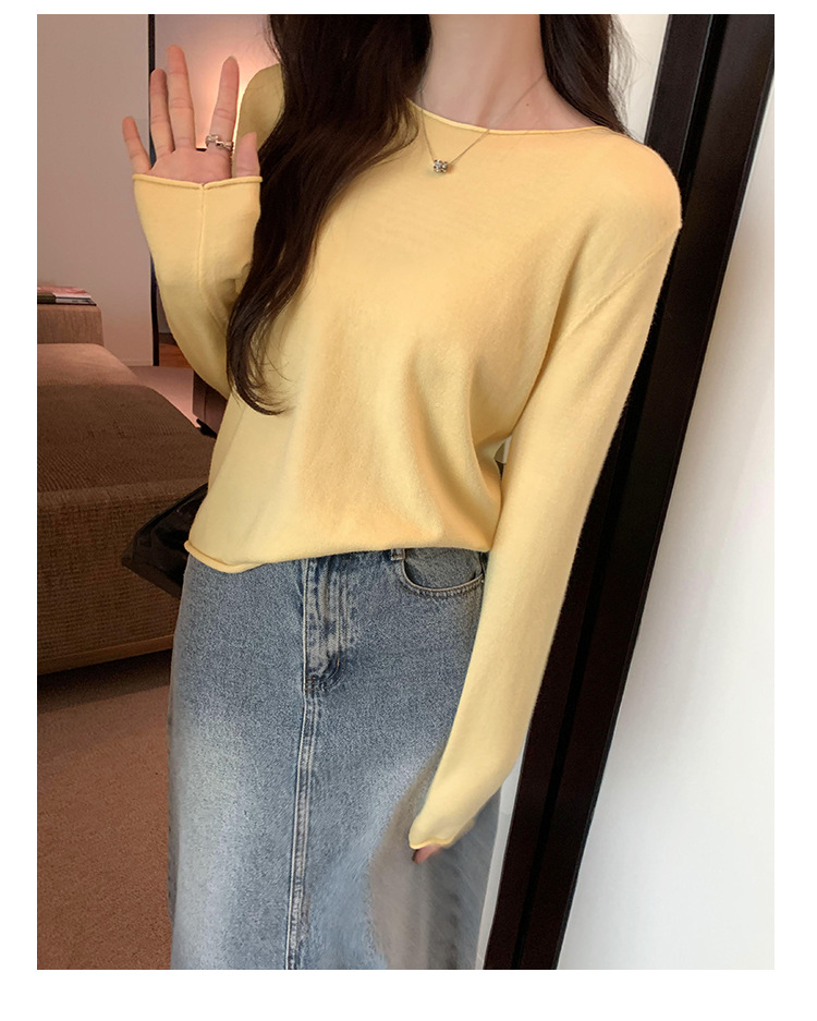 게으르고 편안한 긴팔베이스 니트 스웨터 여성 가을 및 겨울 새로운 라운드 넥 통근 슬림 탑 2024 년스토어 가기