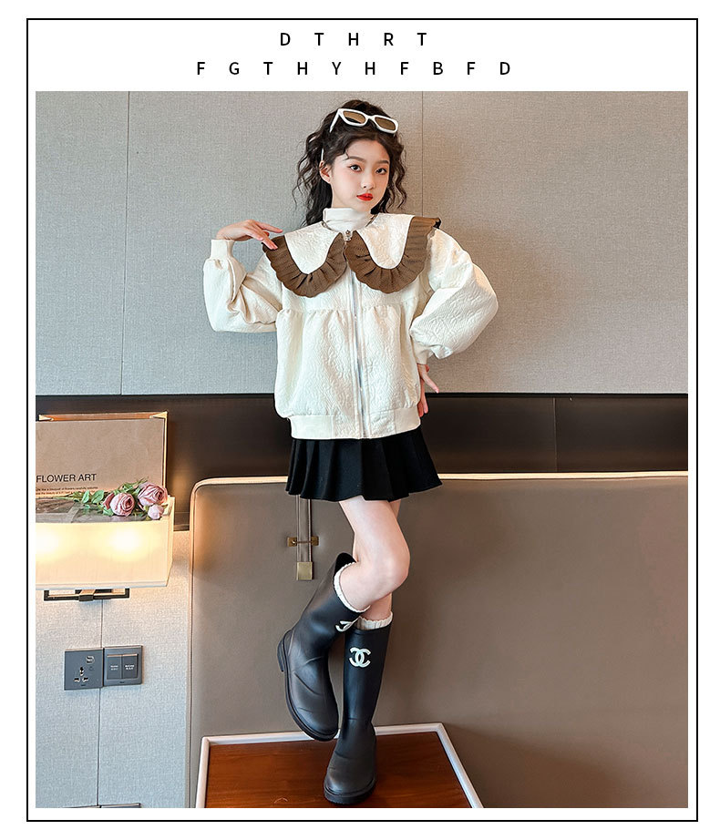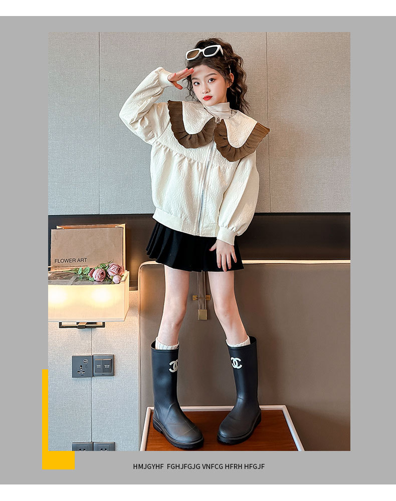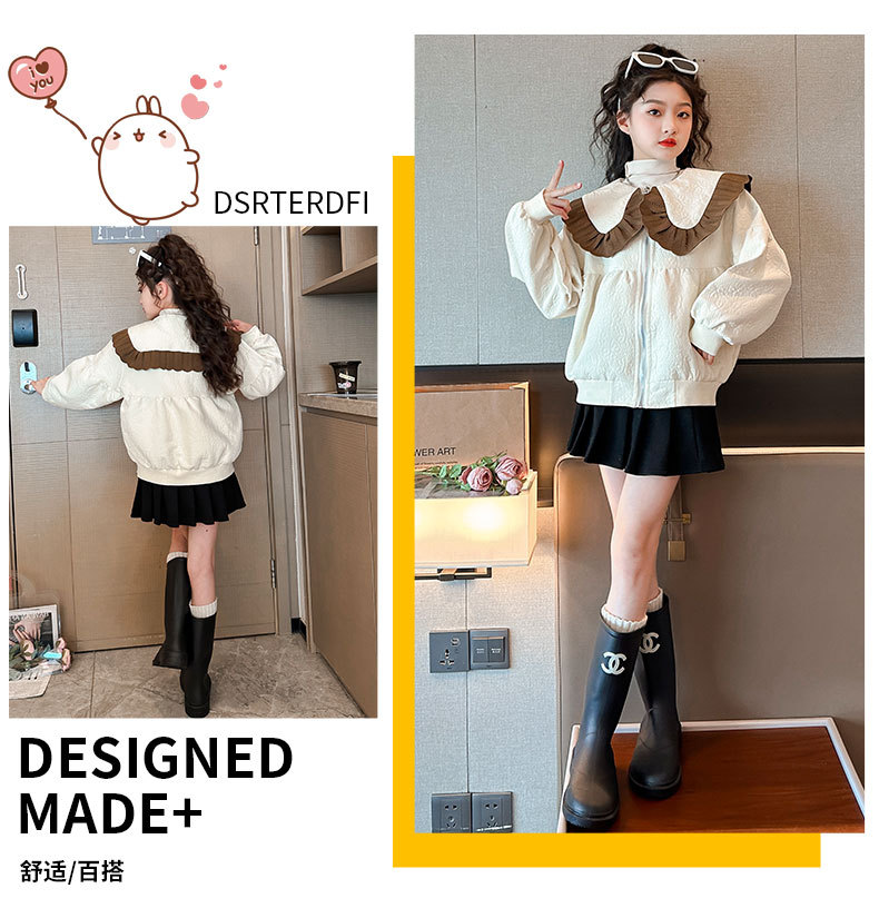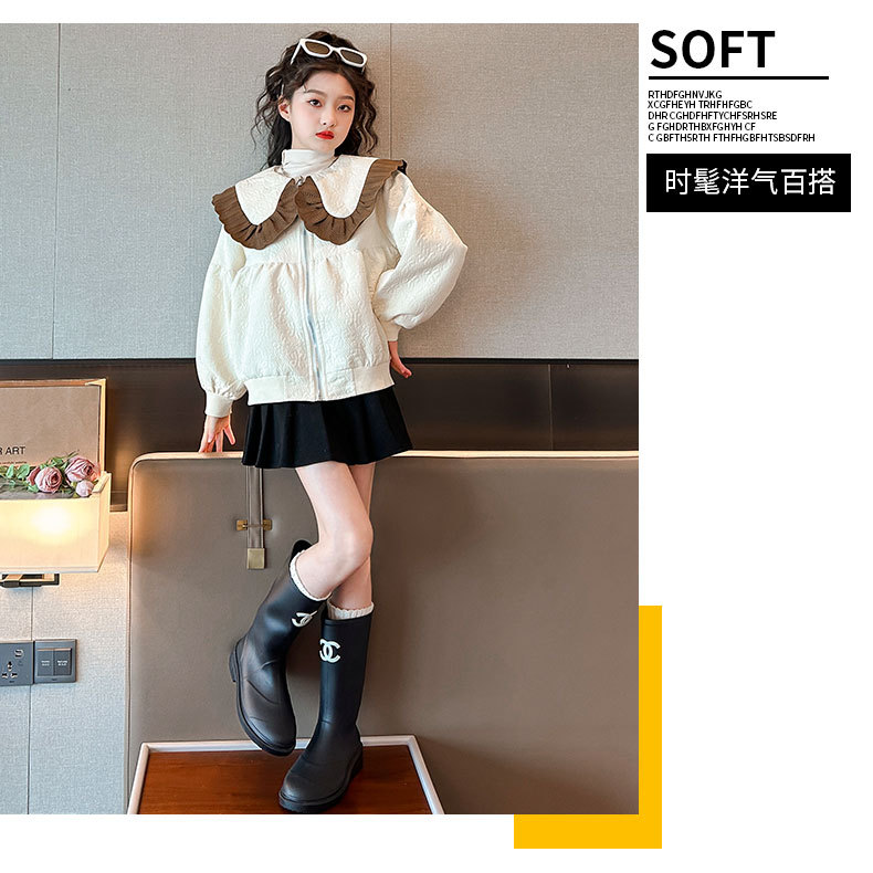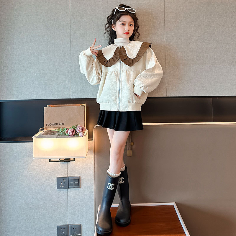 소녀의 큰 소년의 캐주얼 코트 봄과 가을 2024 새로운 스타일 봄 인형 칼라 재킷 소녀의 패셔너블 루즈 탑