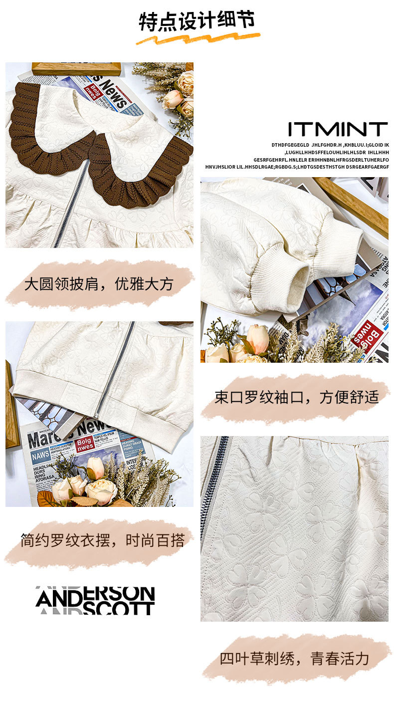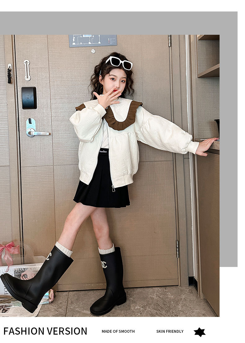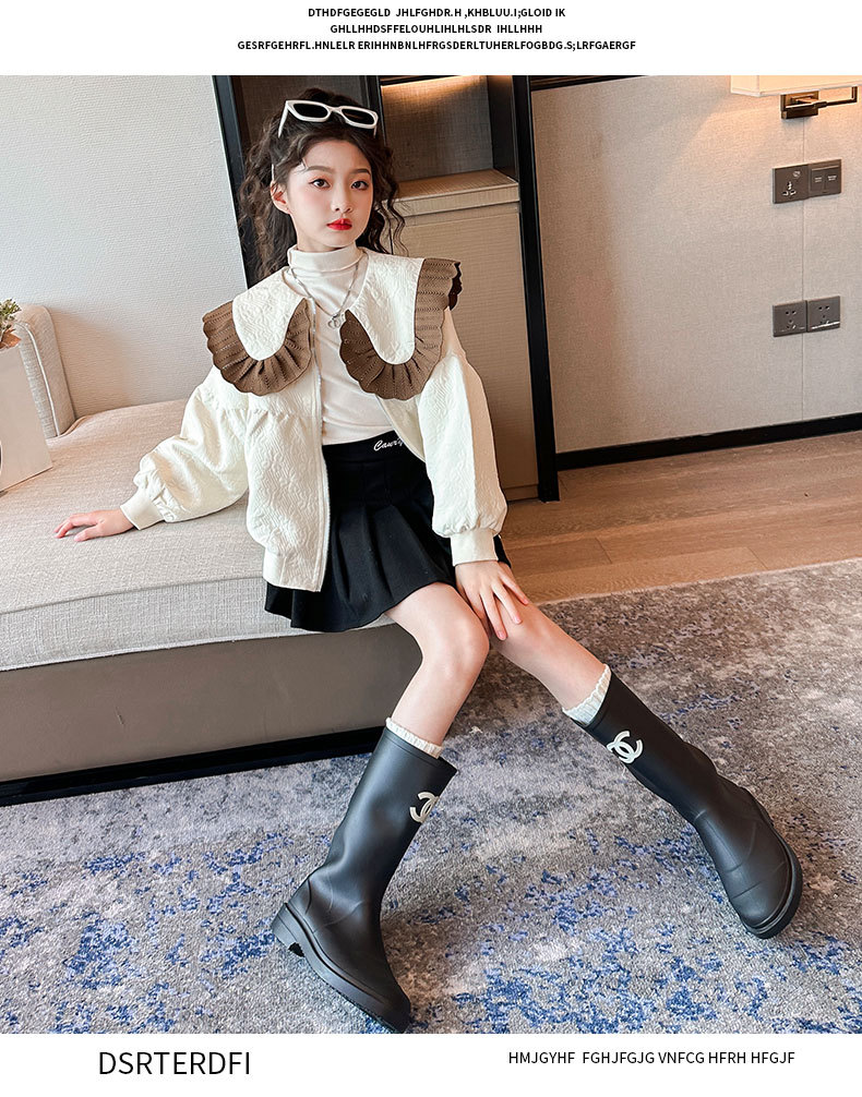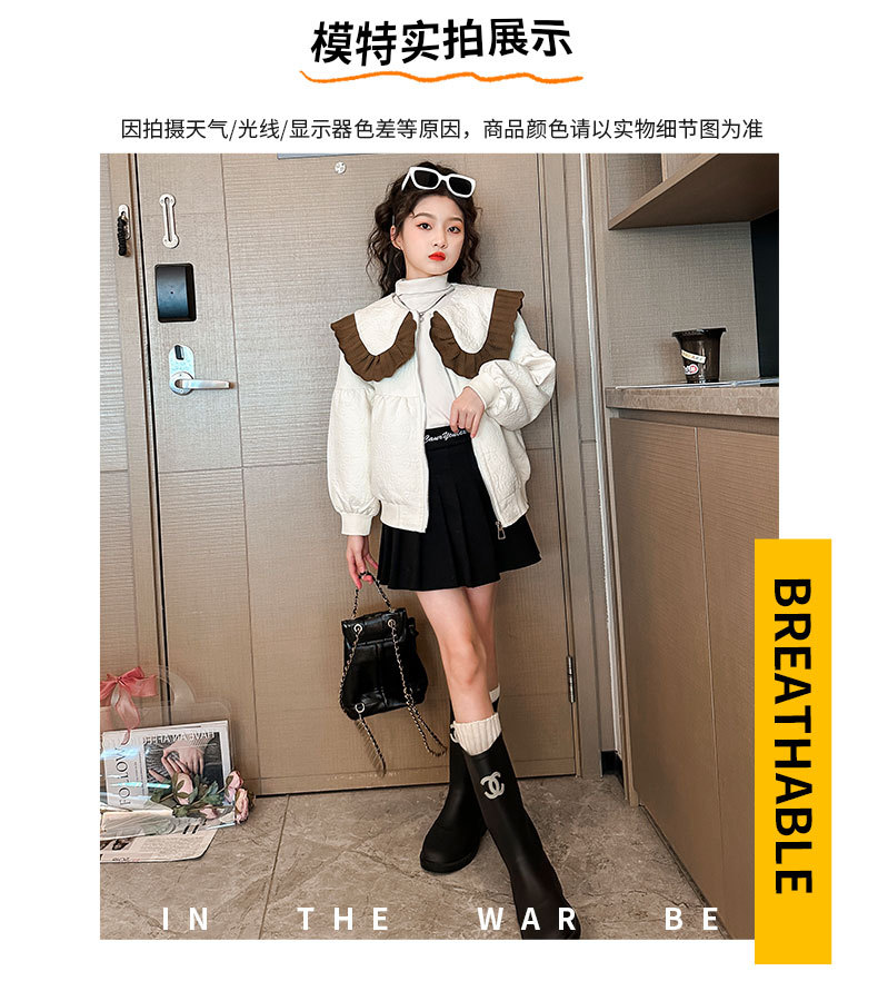 소녀의 큰 소년의 캐주얼 코트 봄과 가을 2024 새로운 스타일 봄 인형 칼라 재킷 소녀의 패셔너블 루즈 탑