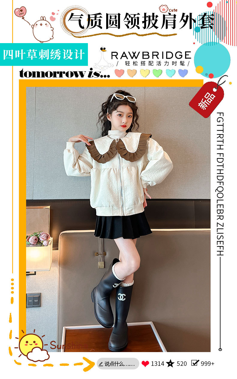 소녀의 큰 소년의 캐주얼 코트 봄과 가을 2024 새로운 스타일 봄 인형 칼라 재킷 소녀의 패셔너블 루즈 탑스토어 가기