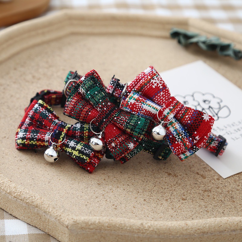 크리스마스 활 넥타이 애완 동물 칼라 산타 클로스 고양이 개 벨 안전 버클 보석 장식 활