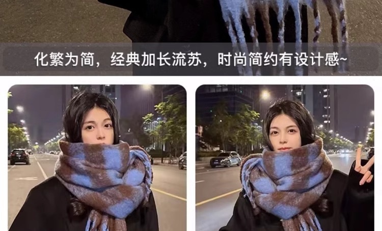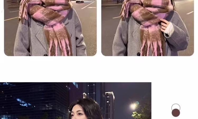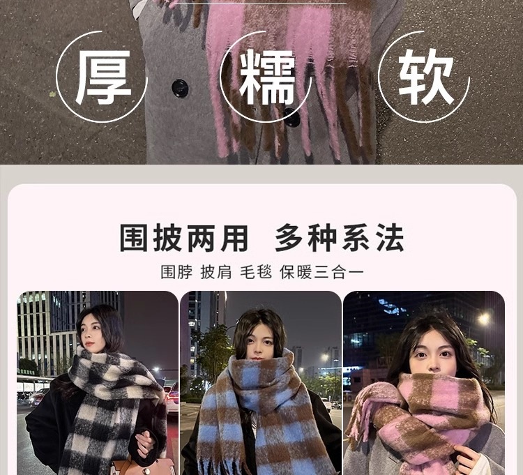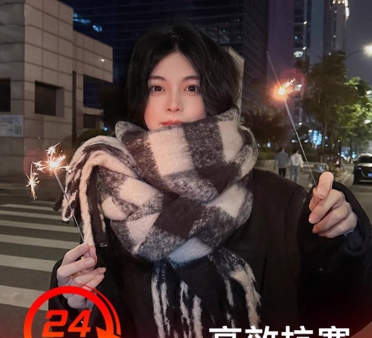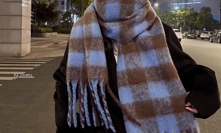 2024 가을과 겨울 격자 무늬 스카프 여성의 흰색 한국 분위기 술 목 보호 방풍 차가운 스카프 남성 도매스토어 가기
