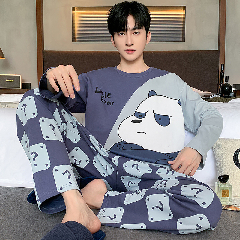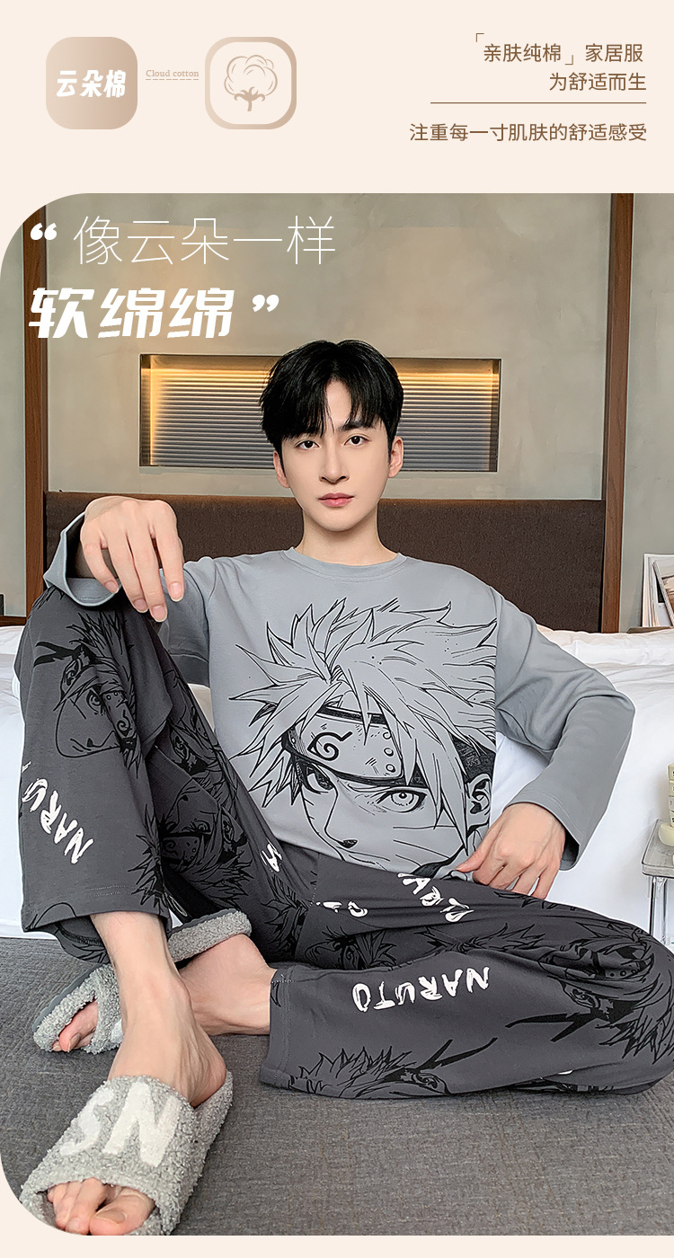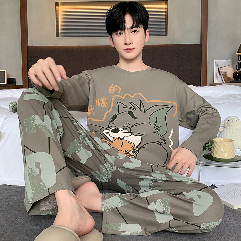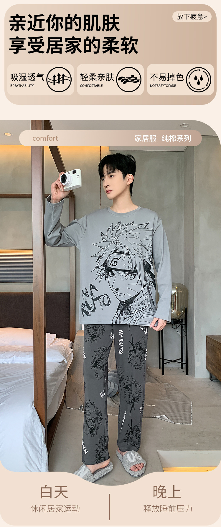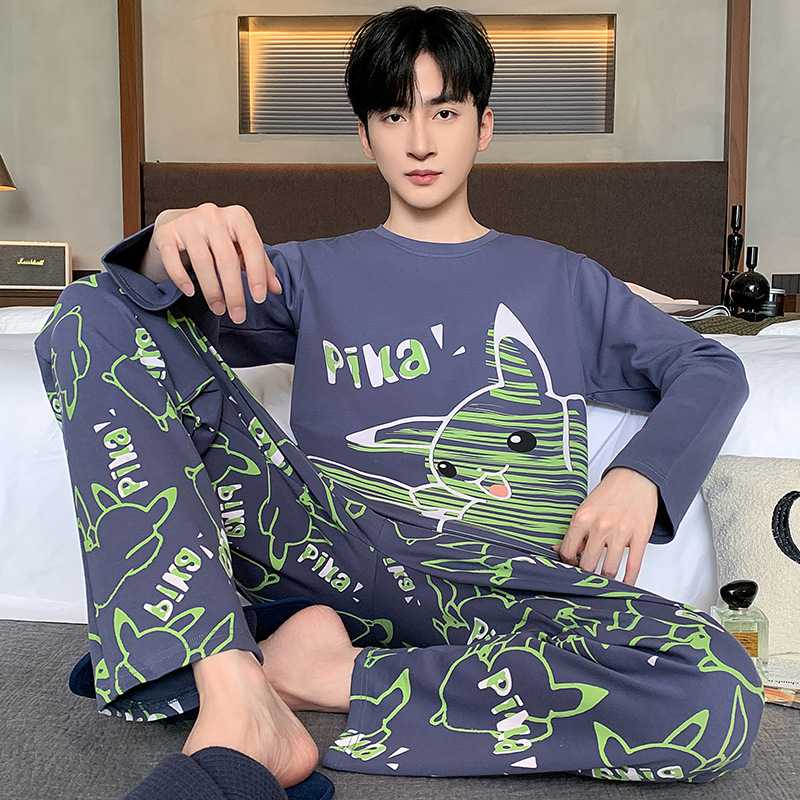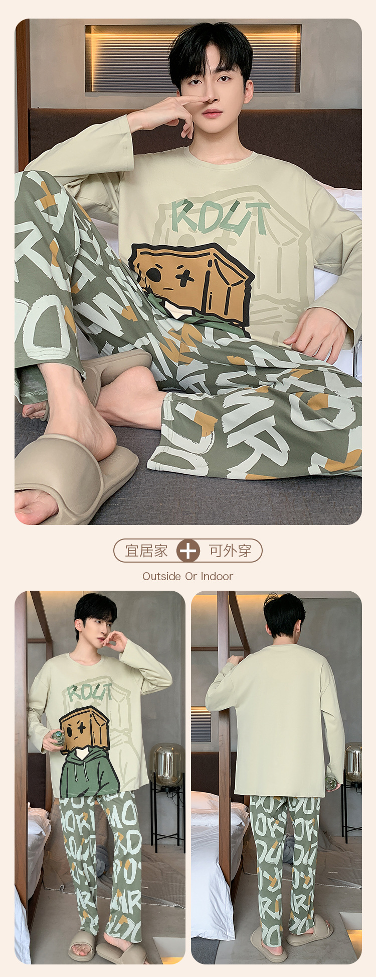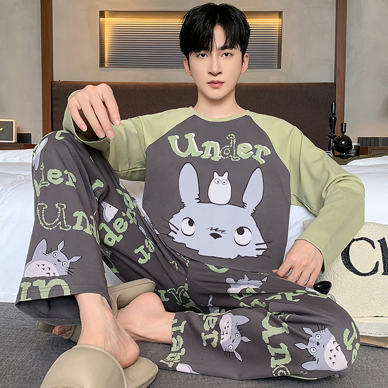 만화 십대 잠옷 남자의 긴팔 바지 순수 면 봄과 가을 큰 소년의 플러스 사이즈 플러스 뚱뚱한 고등학생 홈 옷스토어 가기