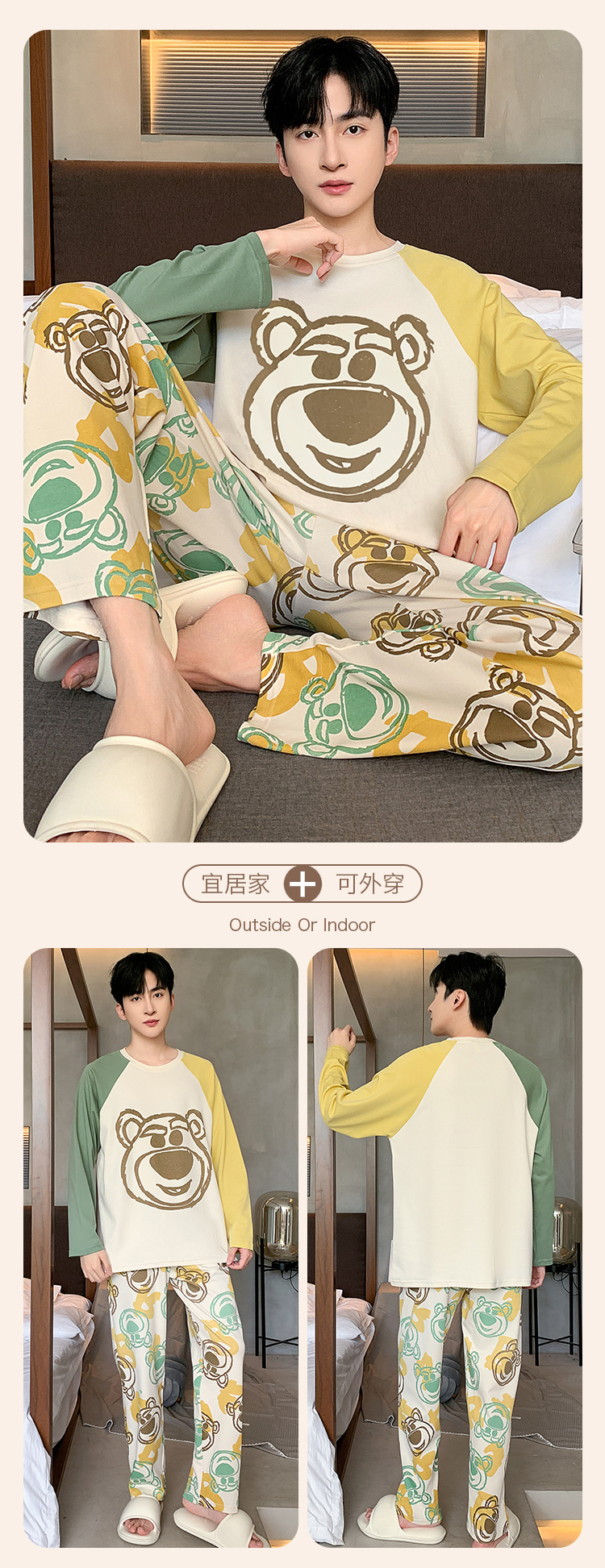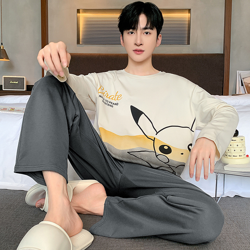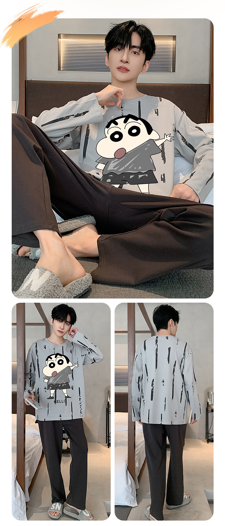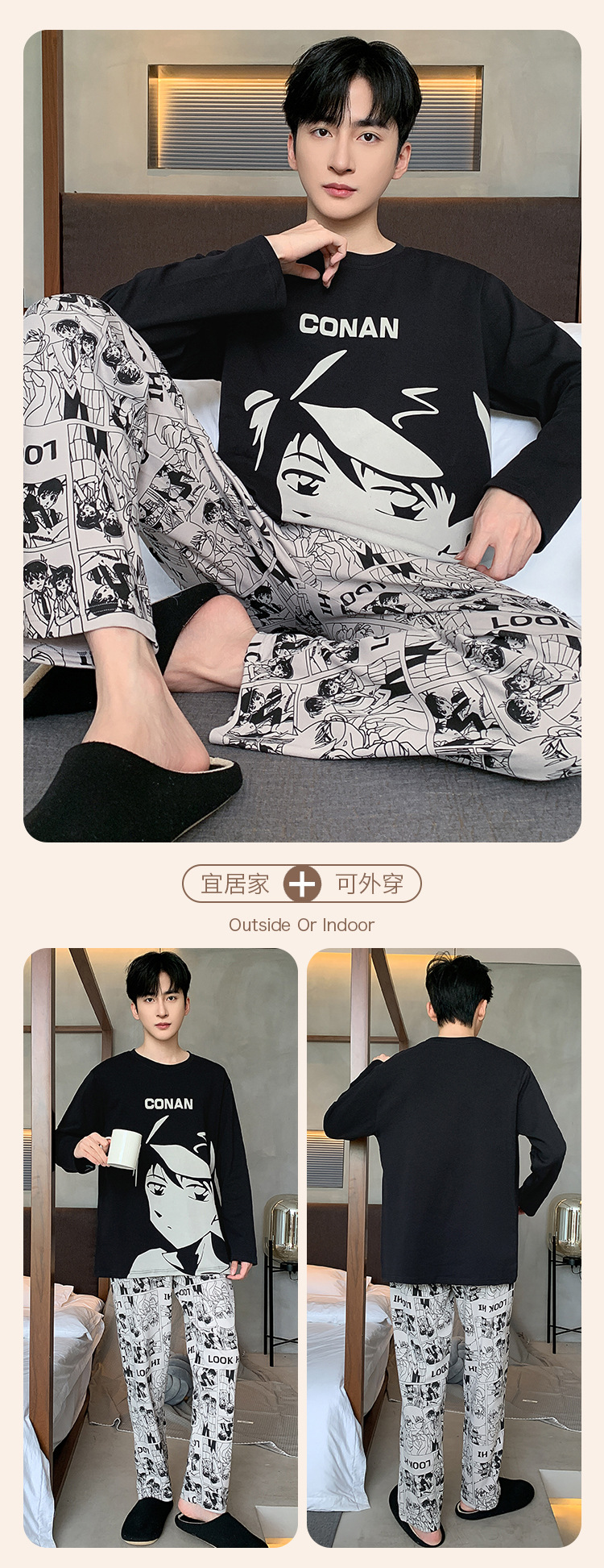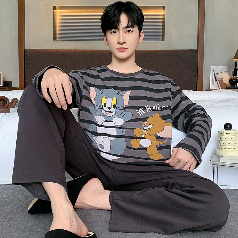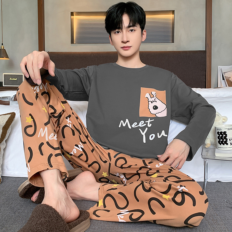 만화 십대 잠옷 남자의 긴팔 바지 순수 면 봄과 가을 큰 소년의 플러스 사이즈 플러스 뚱뚱한 고등학생 홈 옷스토어 가기