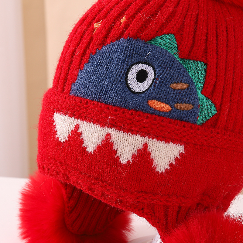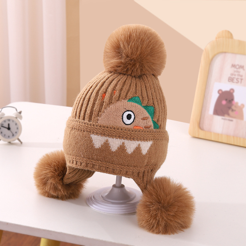 어린이 모자 가을과 겨울 새로운 아기 소년과 소녀 더블 볼 귀 보호 니트 울 캡 귀여운 공룡 따뜻한 모자스토어 가기