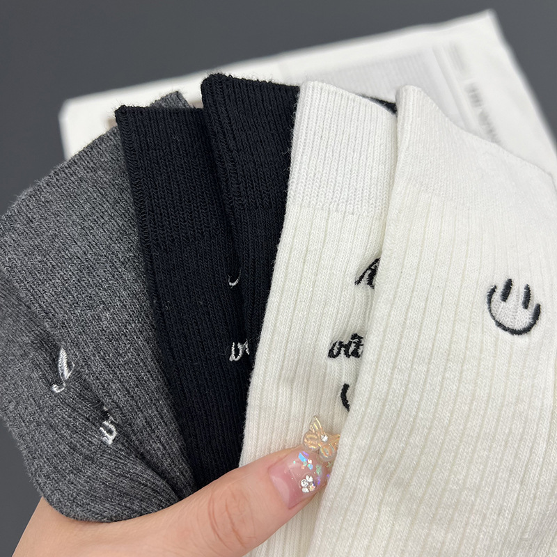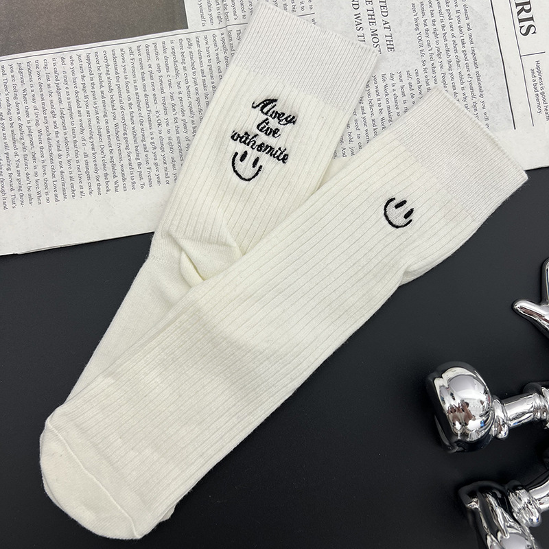 도매 정사이즈 새로운 한국 AB 에디션 자수 편지 양말 튜브 스택 양말 여성용 틈새 면 양말 아카데미 스타일