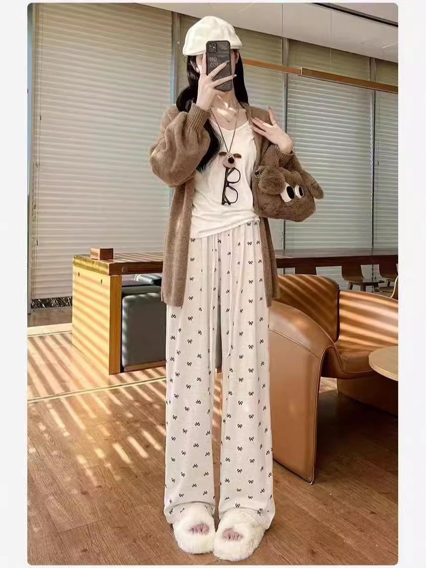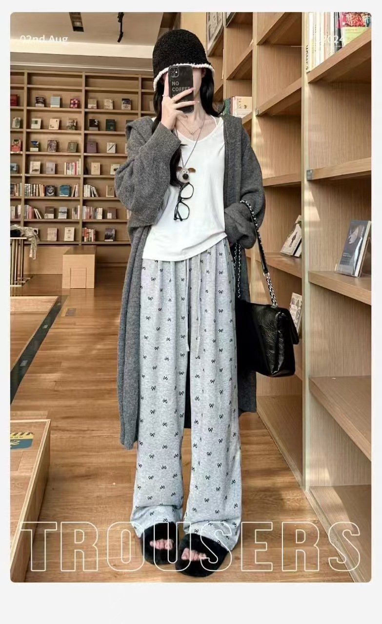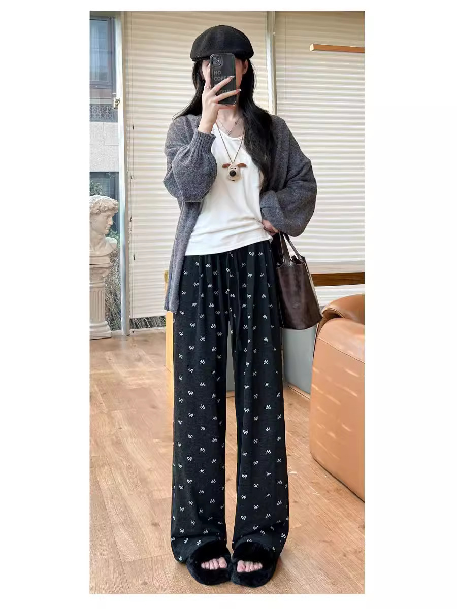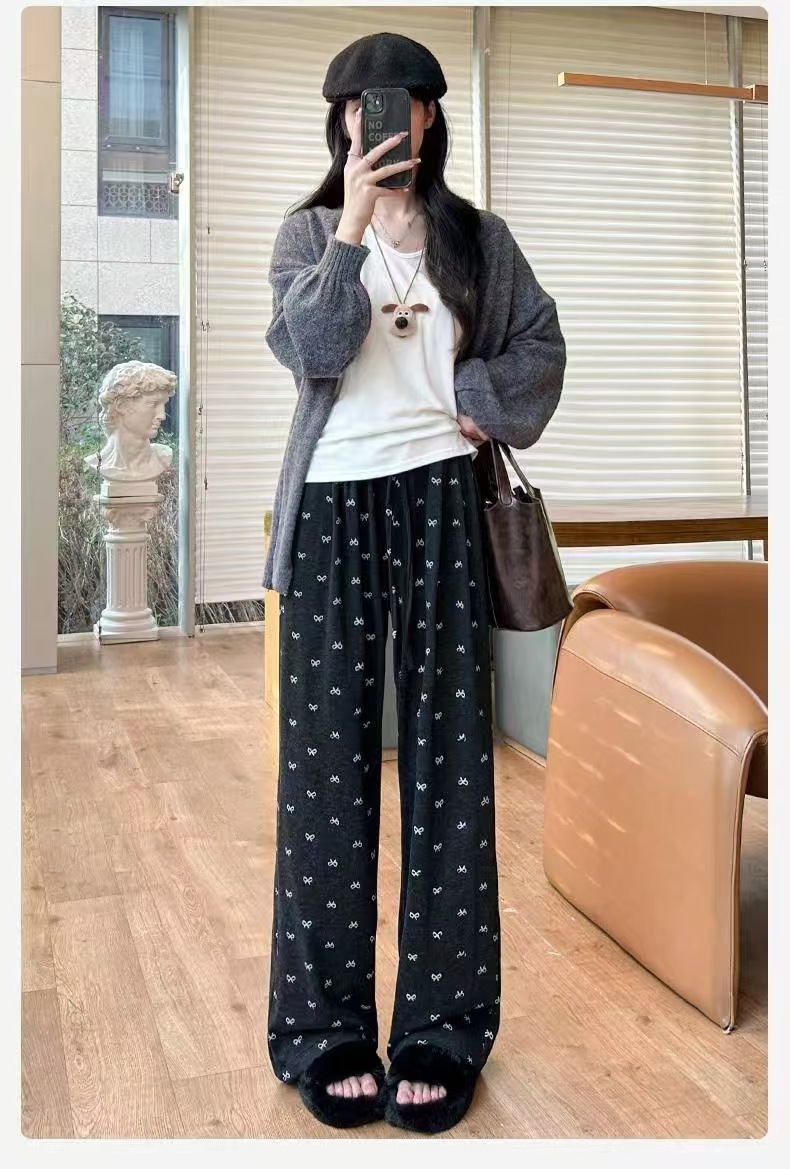 가을과 겨울 기모 두꺼운 찹쌀 인쇄 활 넓은 다리 바지 여성용 게으른 스타일 캐주얼 바지 교수형 바지스토어 가기