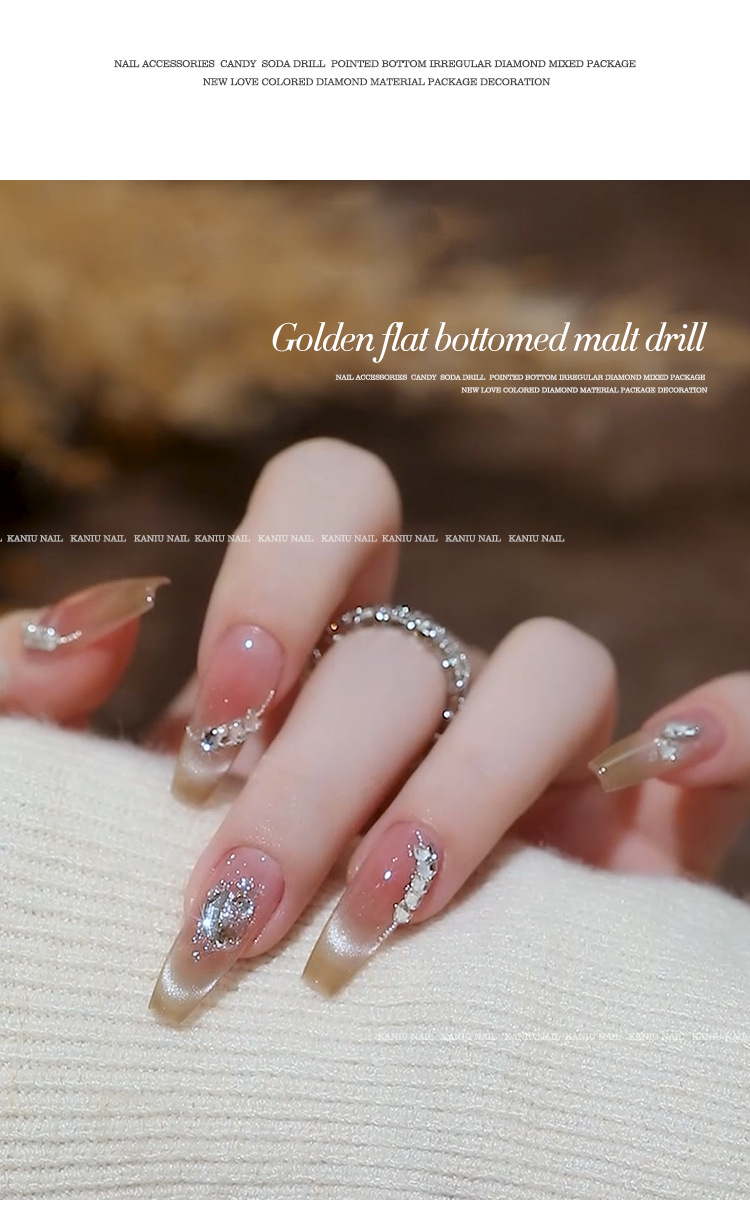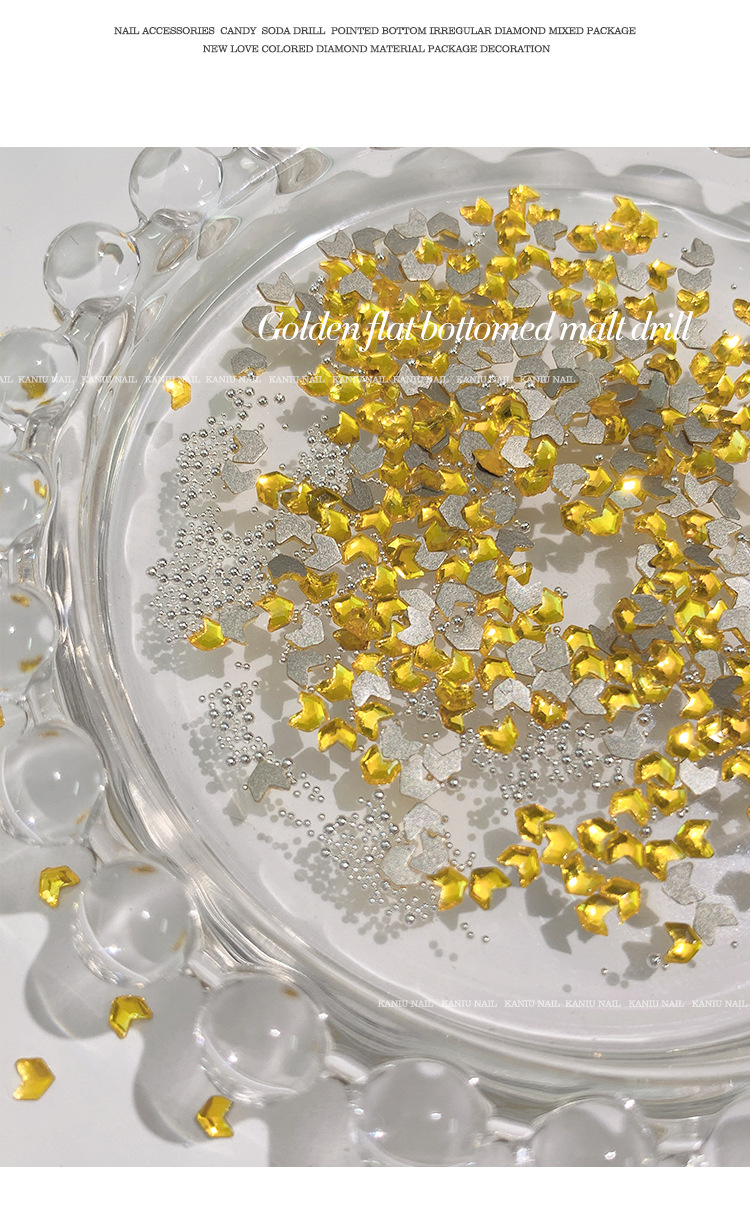 가을과 겨울 새로운 황금 몰트 다이아몬드 네일 아트 쥬얼리 슈퍼 플래시 밀 스파이크 다이아몬드 플랫 바닥 특수 모양의 다이아몬드 플랫 바닥 네일 드릴