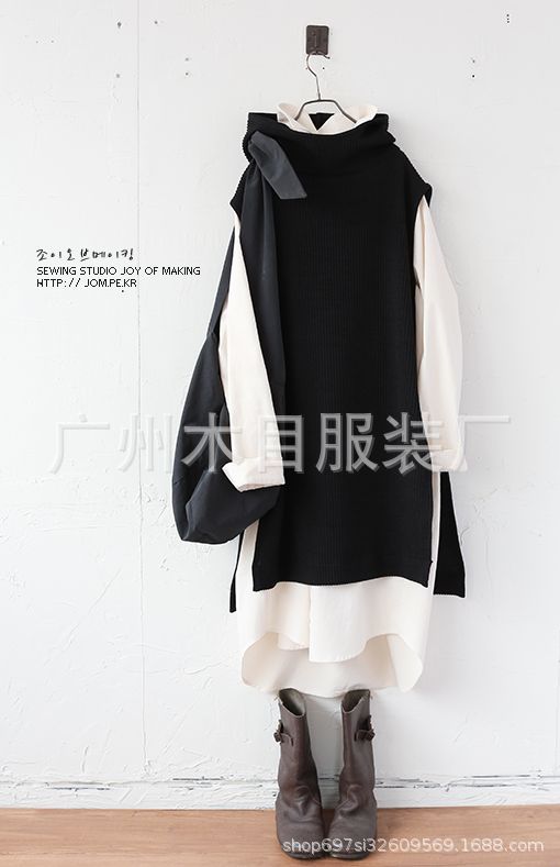 재고 국경 핫 세트 여성 2024 가을과 겨울 새로운 간단한 셔츠 원피스 스웨터 조끼 세트스토어 가기