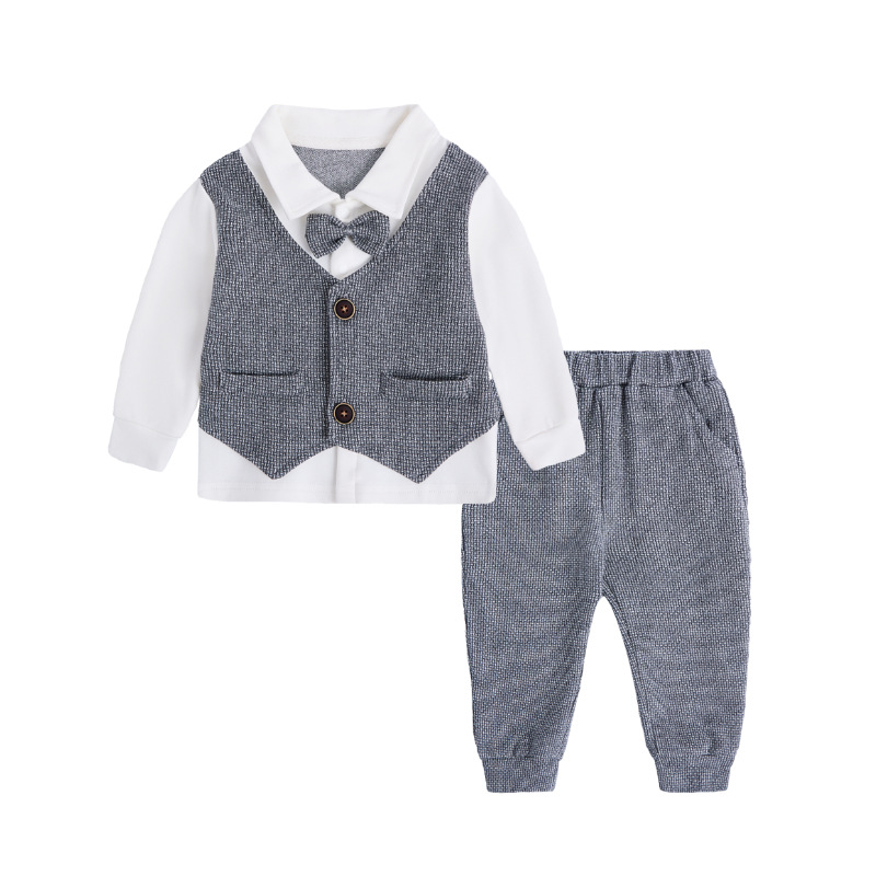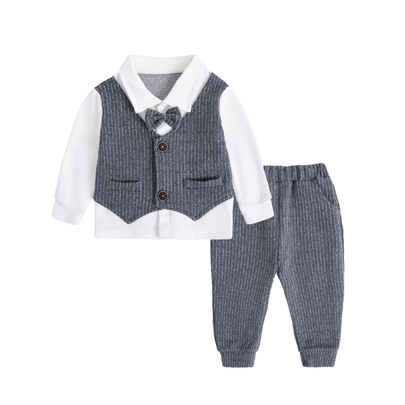 소년 1 년 된 신사의 원피스 봄과 가을 아기의 긴팔 셔츠 가짜 2 피스 조끼 꽃 소녀 잘 생긴 세트 세트스토어 가기