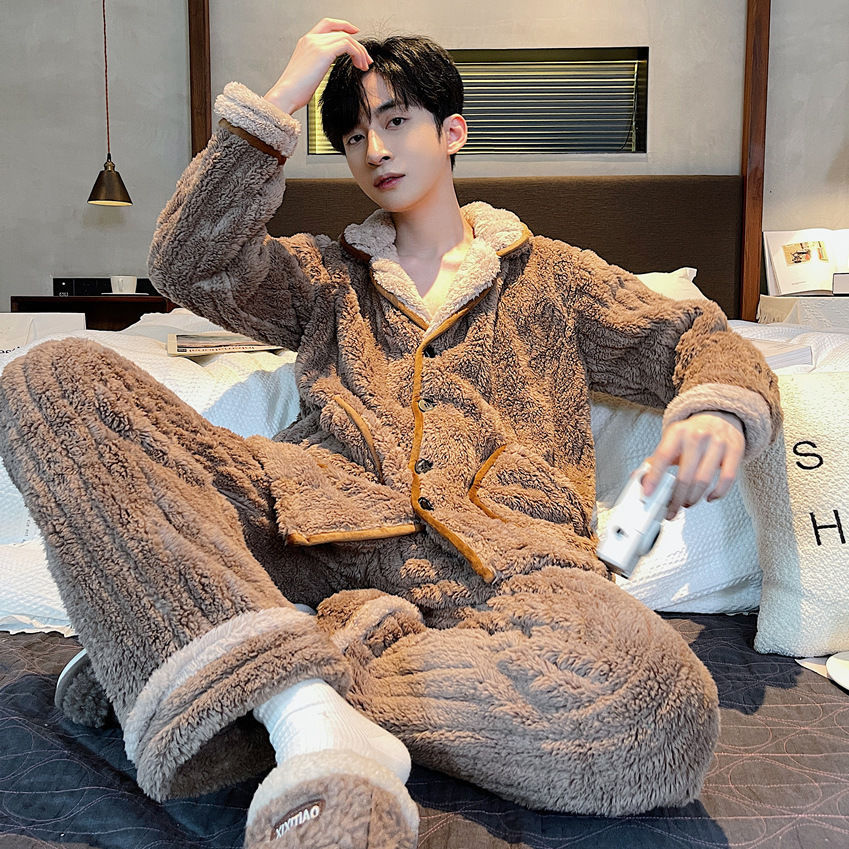 2025 새로운 산호 벨벳 잠옷 남자 겨울 두꺼운 남자 정장 플러스 벨벳 플란넬 가을, 겨울 홈웨어 남자 스타일스토어 가기