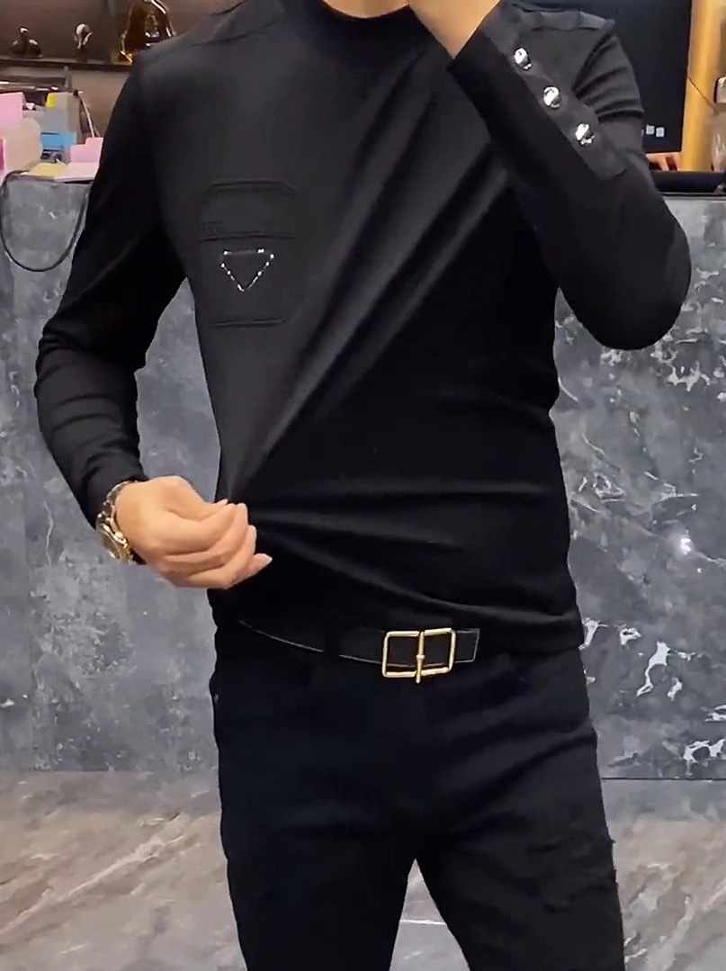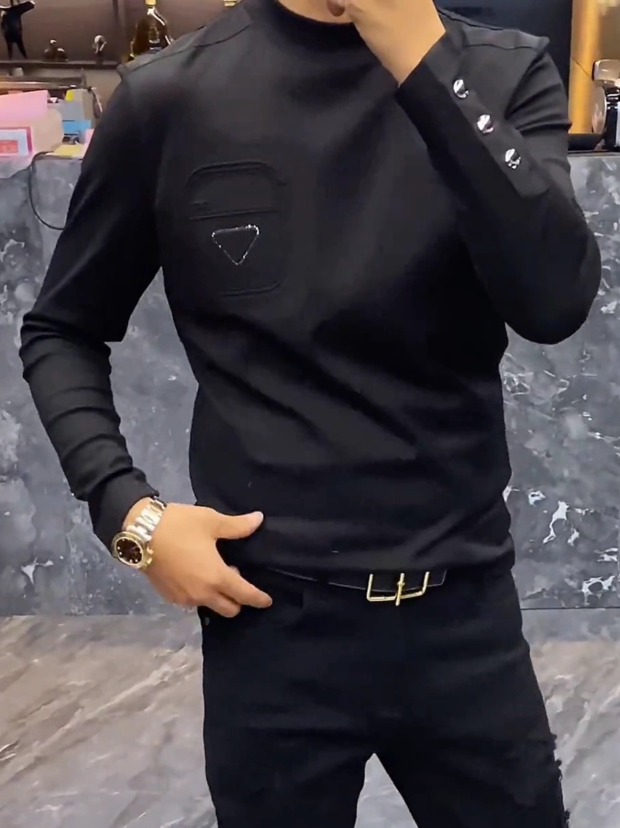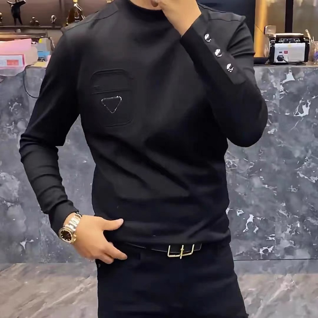 3963 새로운 남성베이스 셔츠 패션 트렌드 핫 드릴링 기술 올 매치 부티크 풀오버 롱 슬리브 탑 남성용 티셔츠