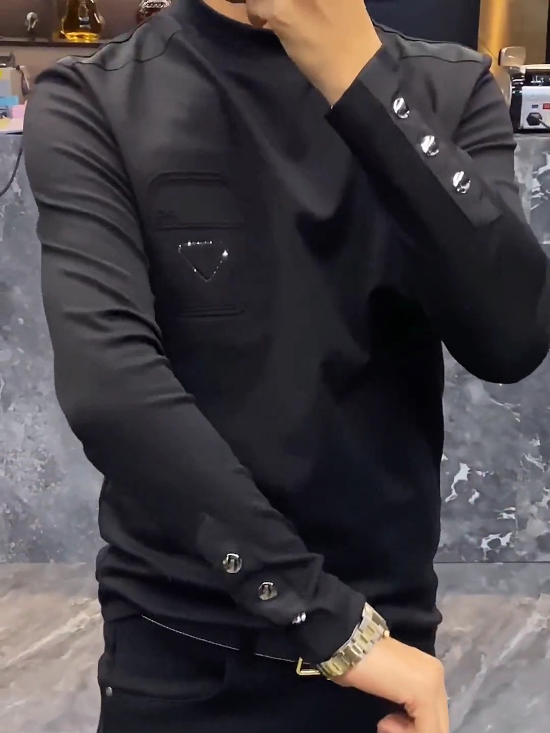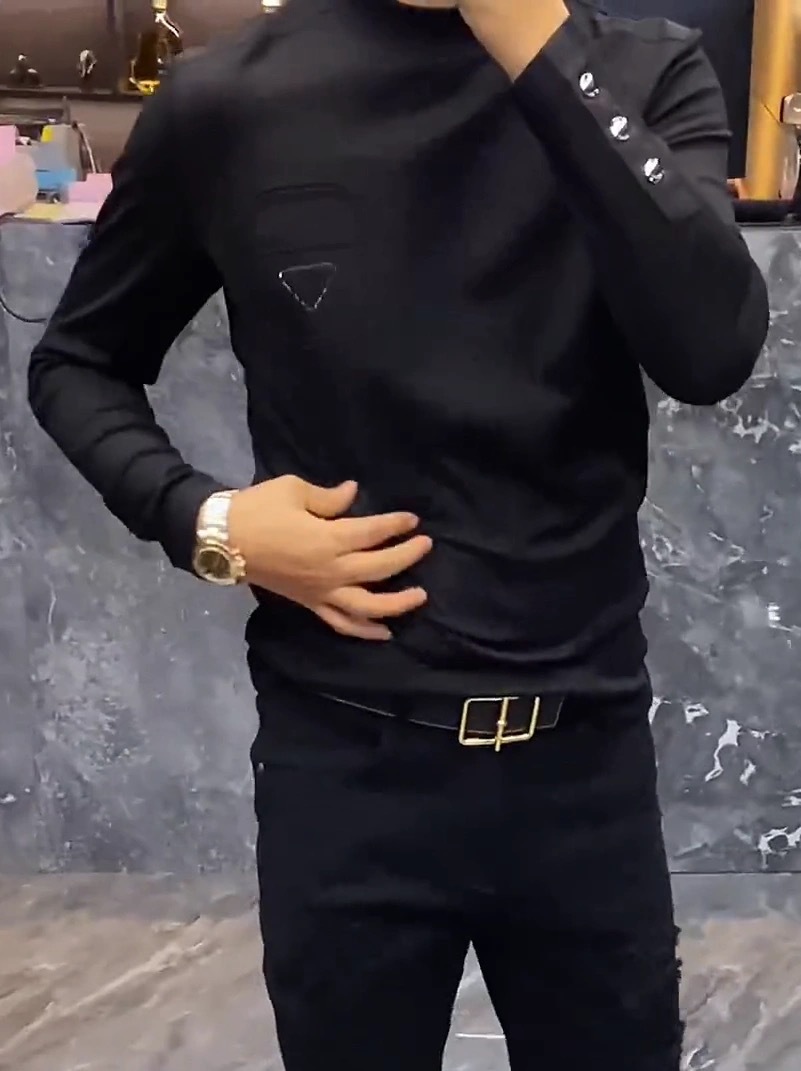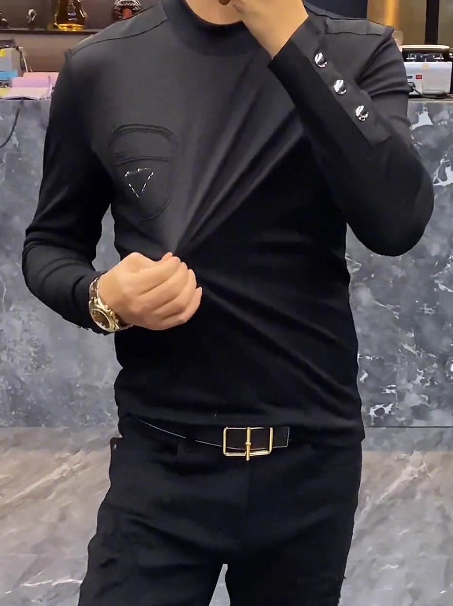 3963 새로운 남성베이스 셔츠 패션 트렌드 핫 드릴링 기술 올 매치 부티크 풀오버 롱 슬리브 탑 남성용 티셔츠