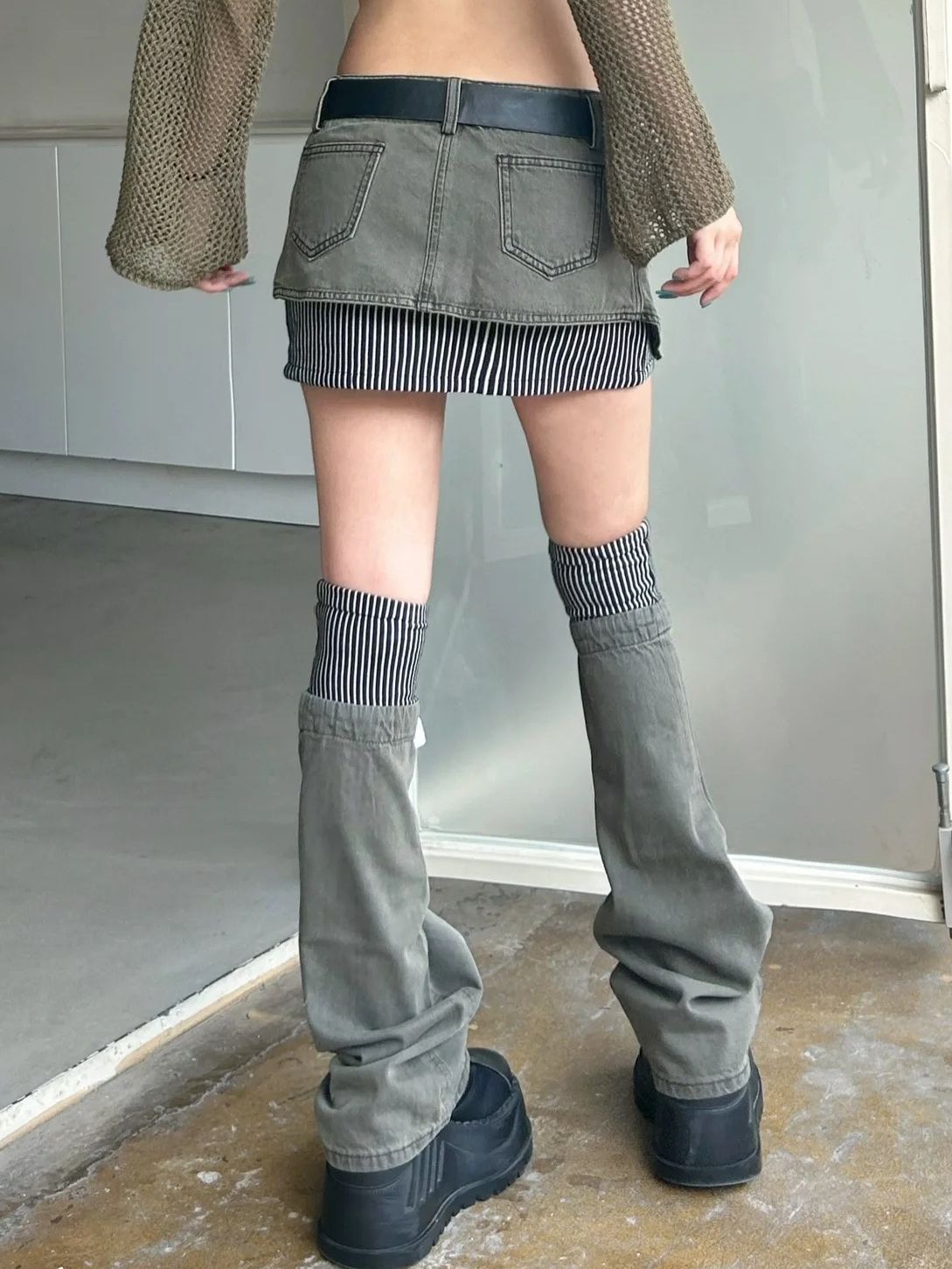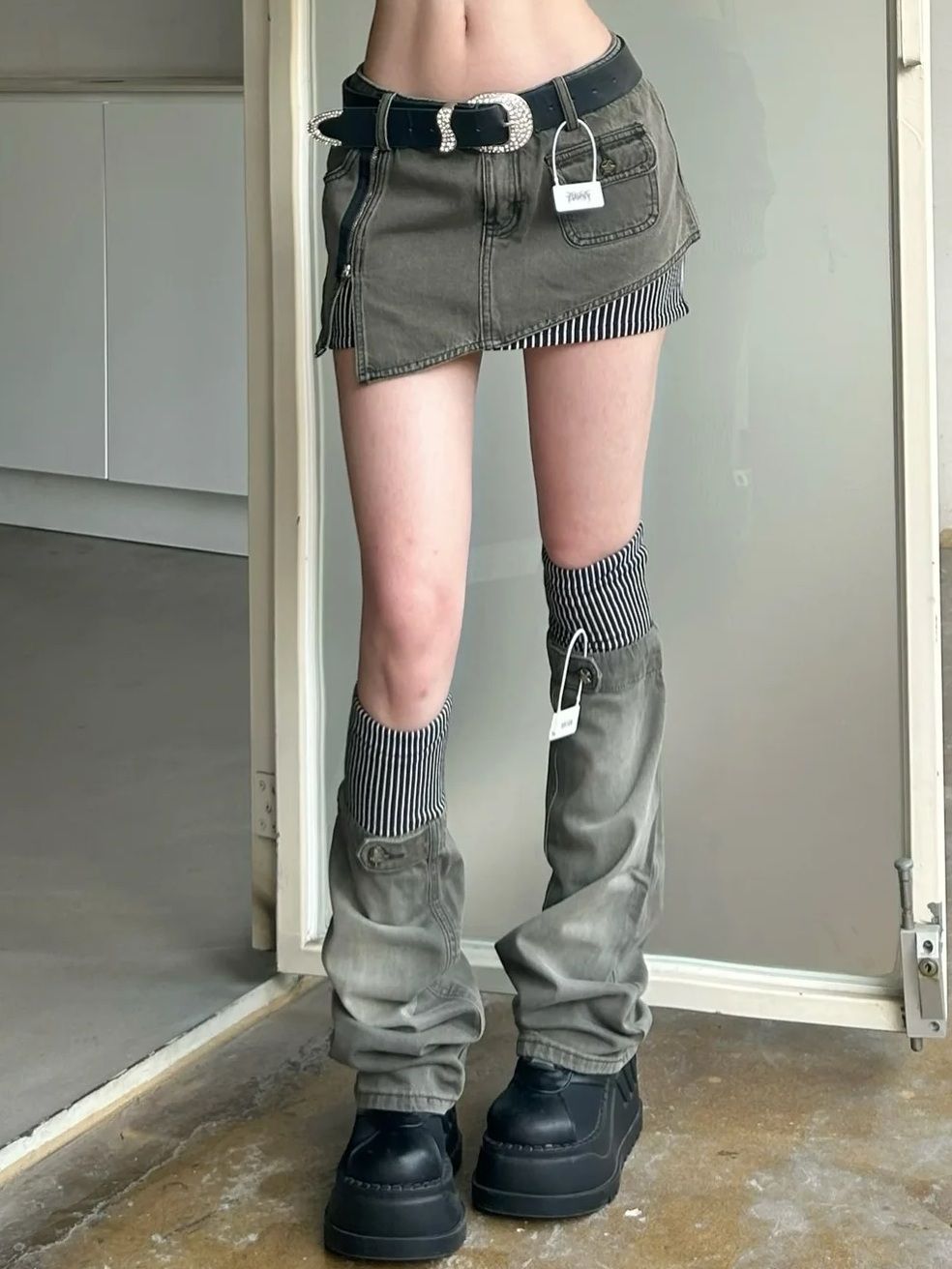 아메리칸 스타일 빈티지 플러스 사이즈 스트라이프 스티칭 데님 세트 스커트 여성 스파이스 소녀 투피스 불규칙한 짧은 스커트 다리 세트스토어 가기