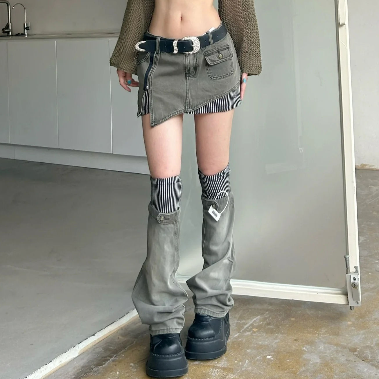 아메리칸 스타일 빈티지 플러스 사이즈 스트라이프 스티칭 데님 세트 스커트 여성 스파이스 소녀 투피스 불규칙한 짧은 스커트 다리 세트