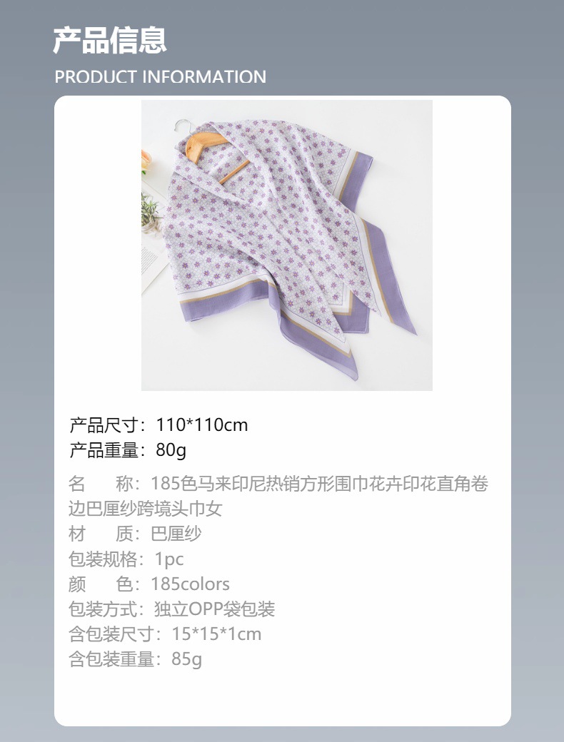 185 색 malay indonesia 핫 스퀘어 스카프 인쇄 발리 원사 크로스 보더 스카프 (지속적으로 새로운 색상 업데이트)
