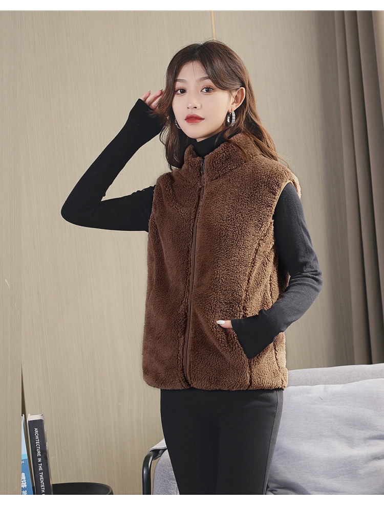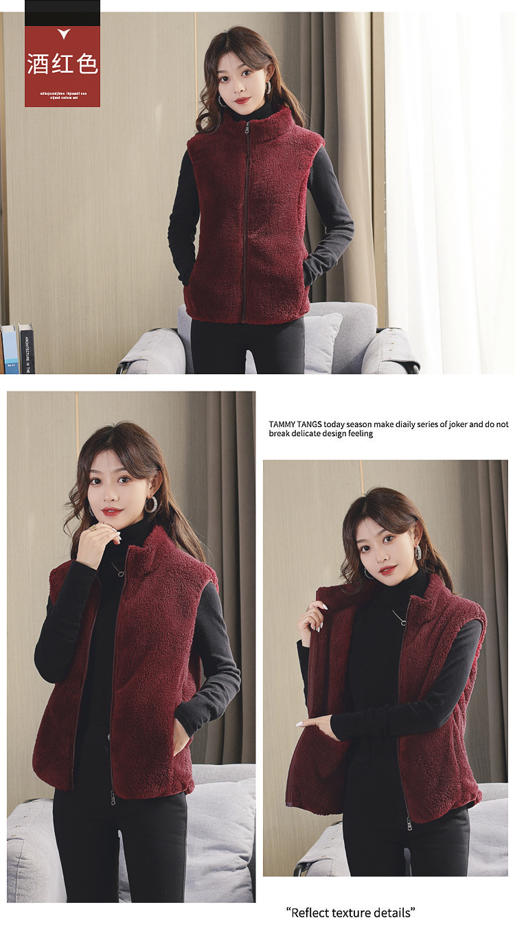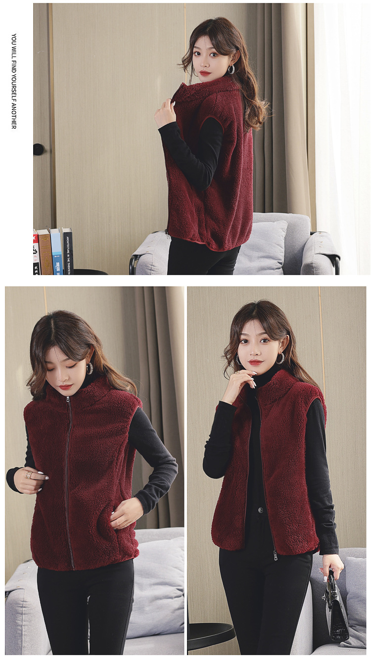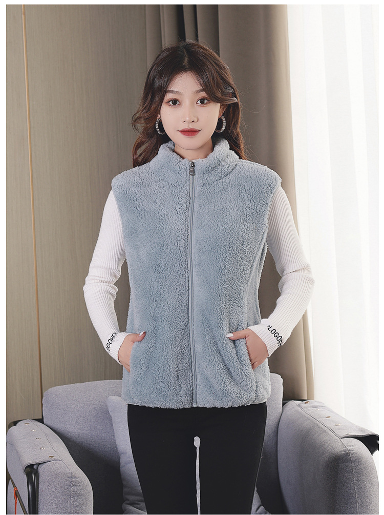 폴라 플리스 조끼 여성 조끼 가을과 겨울 기모 따뜻한 양면 플리스 칼라 조끼 산호 양털 양복 조끼