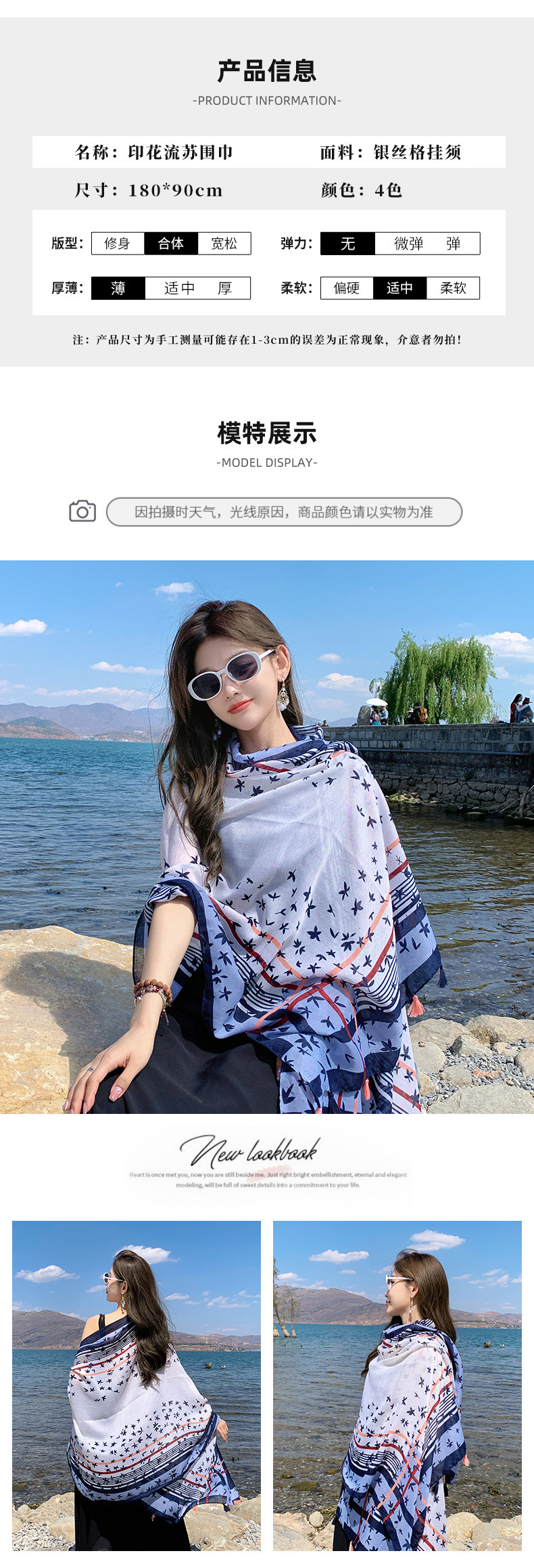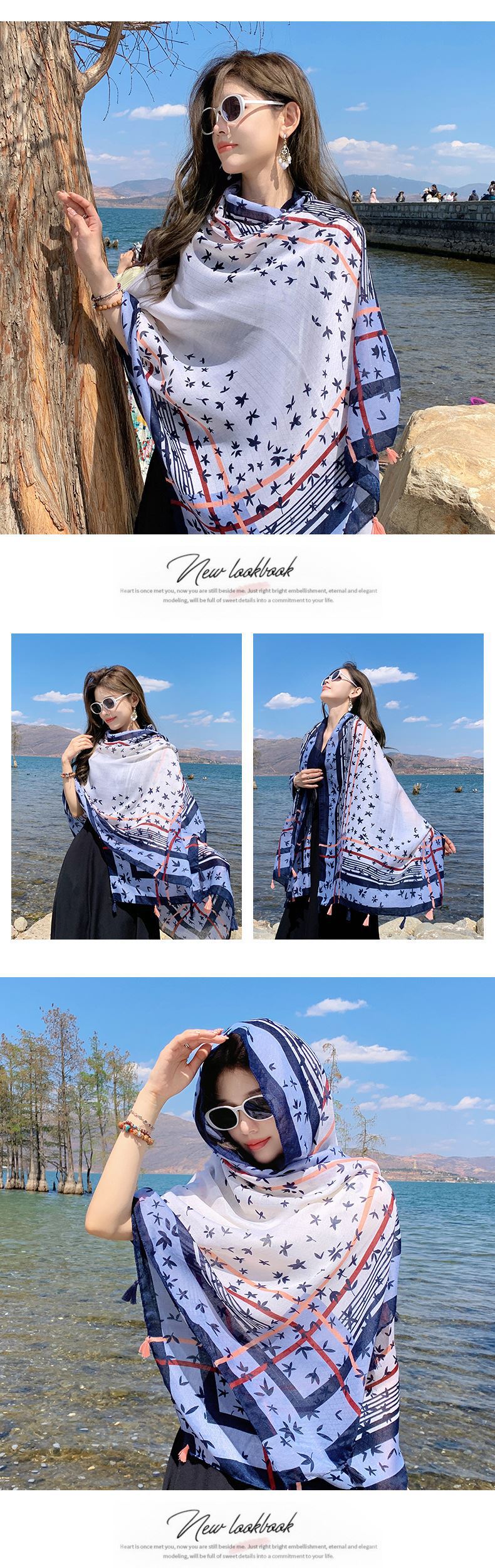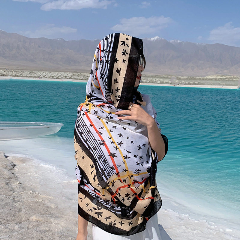 여름 새로운 여행 사진 스카프 여성 민족 스타일 해변 슈퍼 대형 스카프 얇은 외부 스카프 목도리