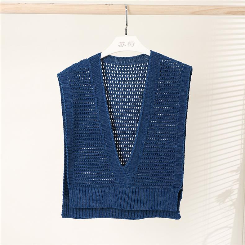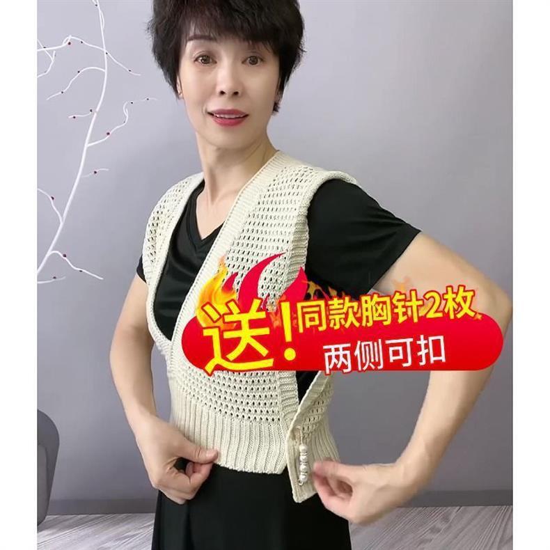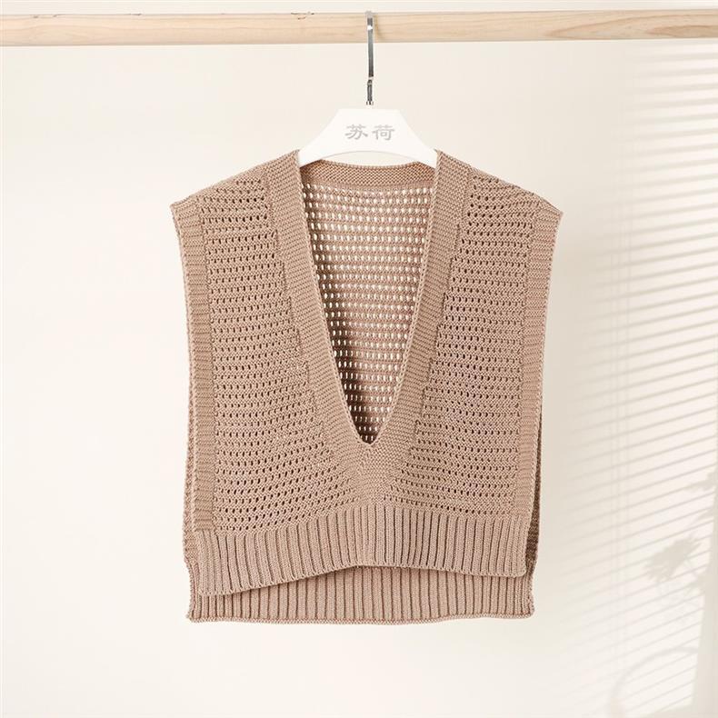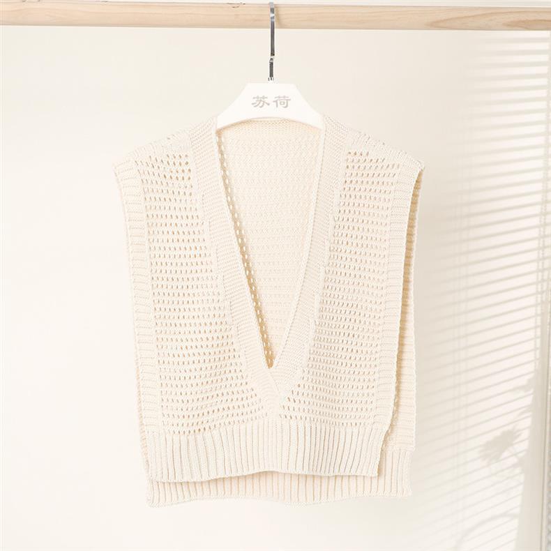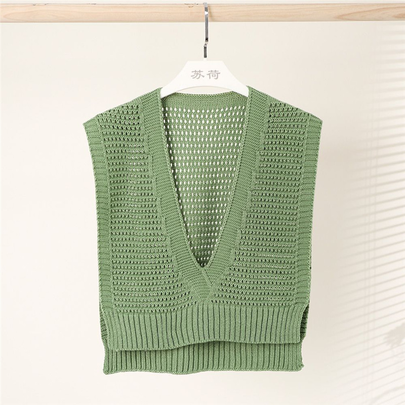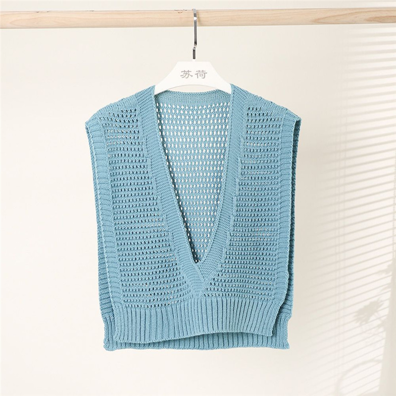 [니트 조끼] 풀오버 니트 목도리 여름 에어컨 룸 따뜻한 외부 올 매치 간단한 배달 브로치