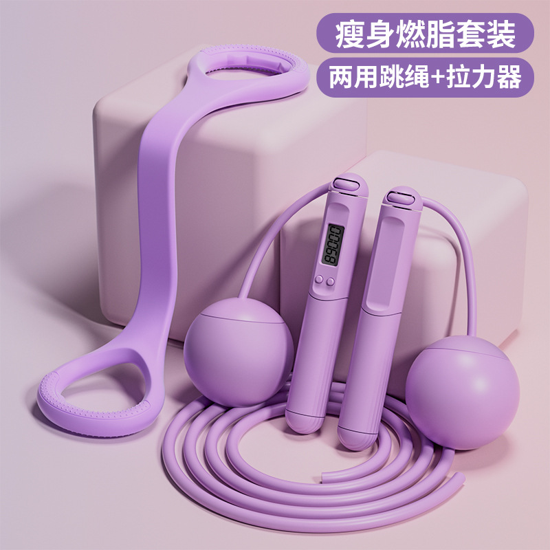 • 지방 연소 조합 세트 [다용도 카운팅 줄넘기 + 요가 텐셔너] 보라색