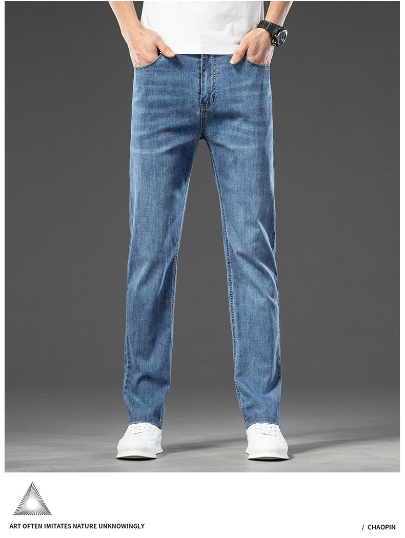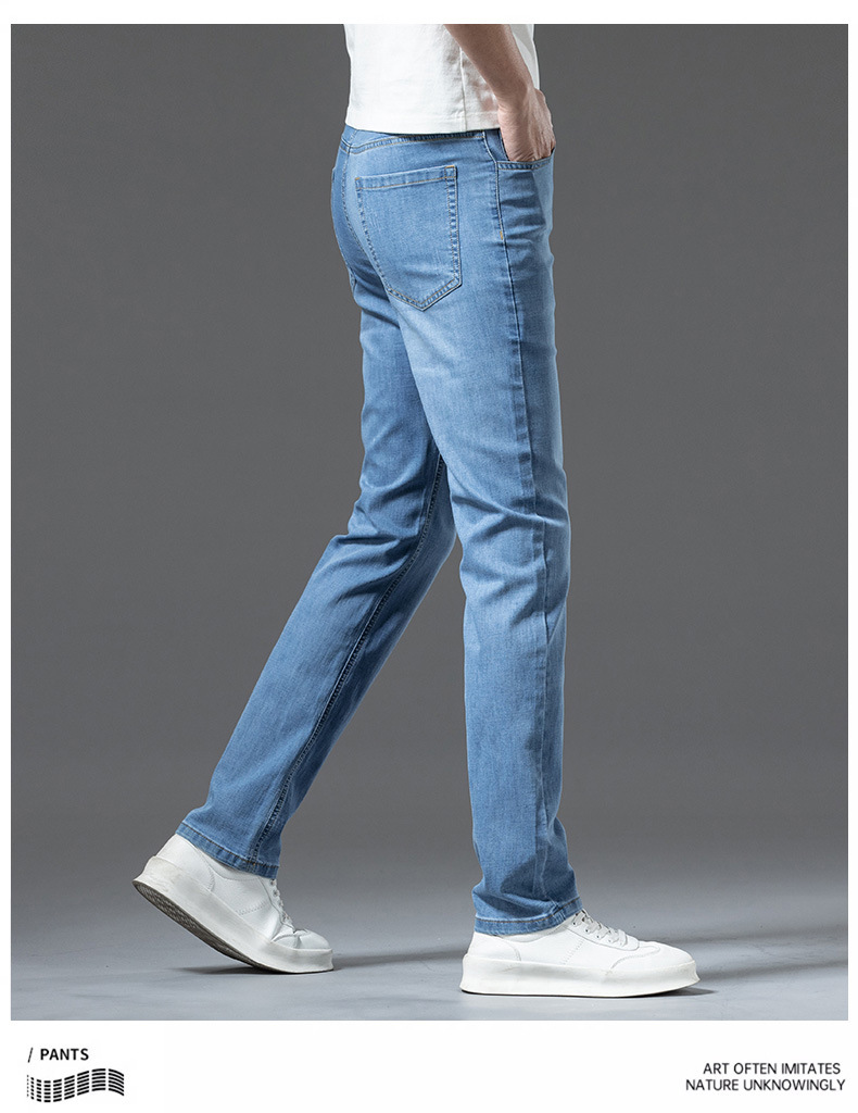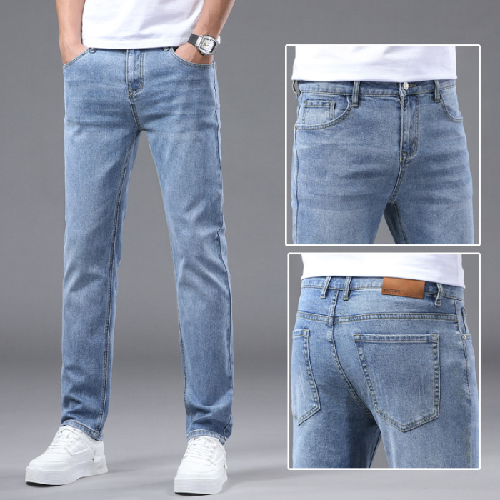 여름 얇은 청바지 남성용 슬림 스트레이트 조커 트렌드 스트레치 캐주얼 긴 바지 광저우 신탕 도매