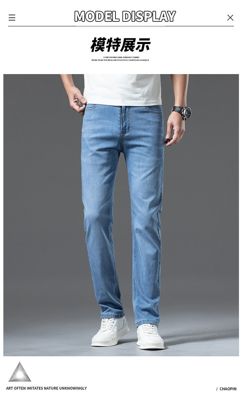 여름 얇은 청바지 남성용 슬림 스트레이트 조커 트렌드 스트레치 캐주얼 긴 바지 광저우 신탕 도매스토어 가기