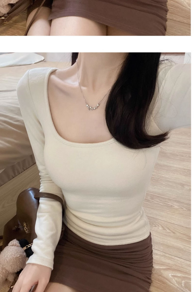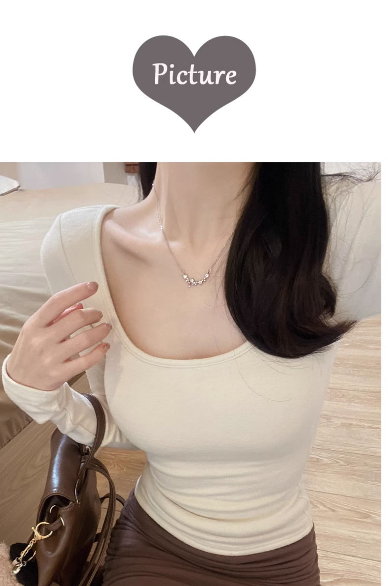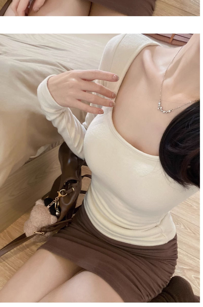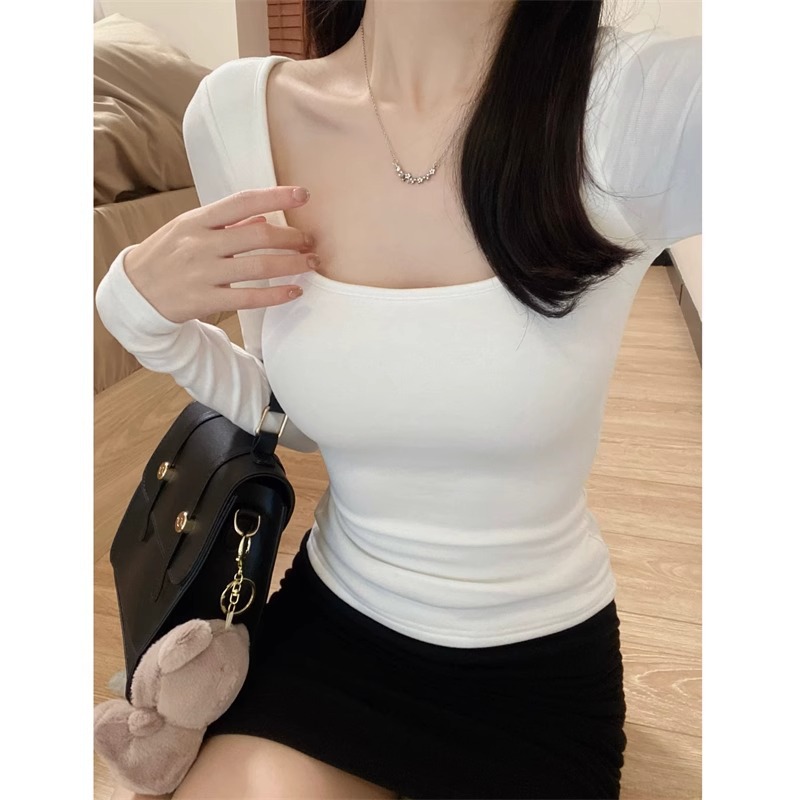 브러쉬 벨벳 이너 베이스 셔츠 여성의 가을과 겨울 2024 새로운 순수한 가슴 패드 긴 소매 티셔츠 로우 칼라 탑스토어 가기