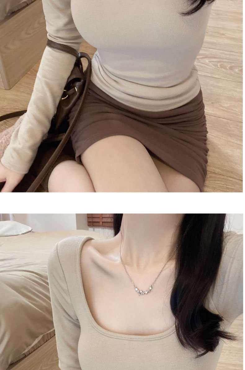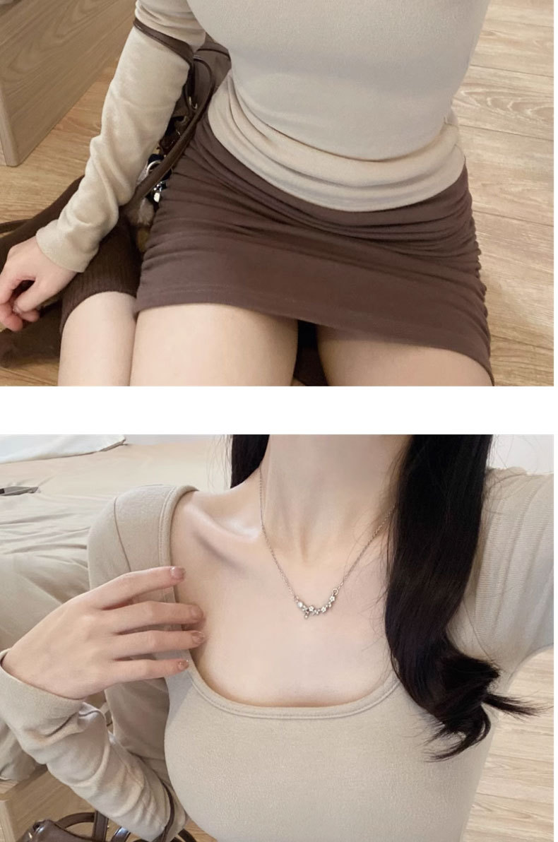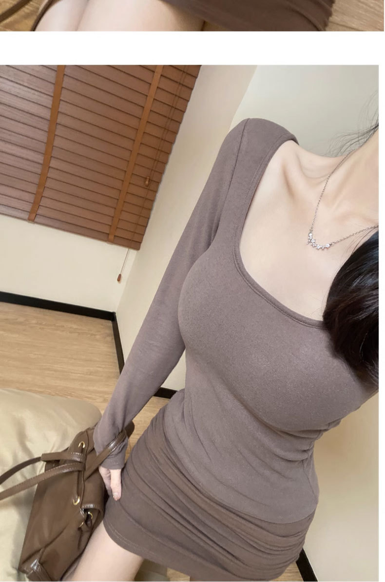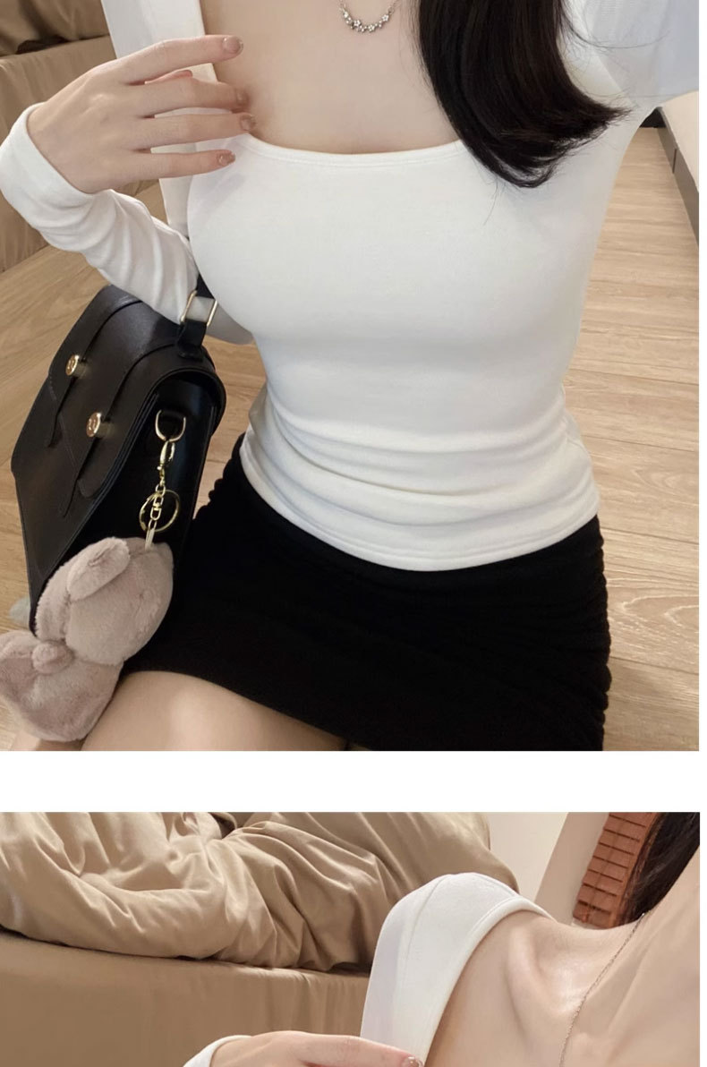 브러쉬 벨벳 이너 베이스 셔츠 여성의 가을과 겨울 2024 새로운 순수한 가슴 패드 긴 소매 티셔츠 로우 칼라 탑스토어 가기