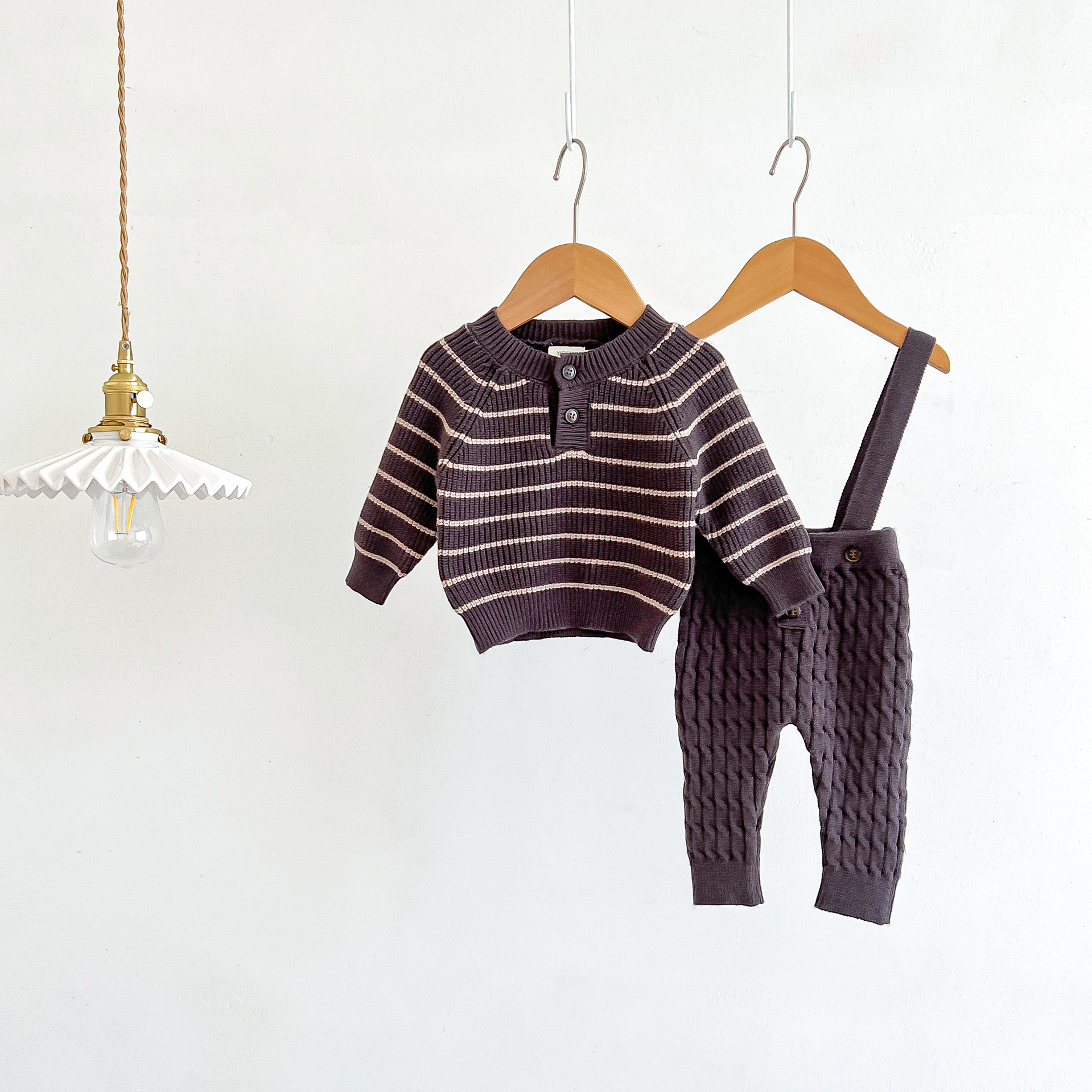 가을과 겨울 원피스 소년의 세트 소녀 아기의 서양식 스웨터 스트라이프 니트 올매치 백 아기의 투피스 세트스토어 가기