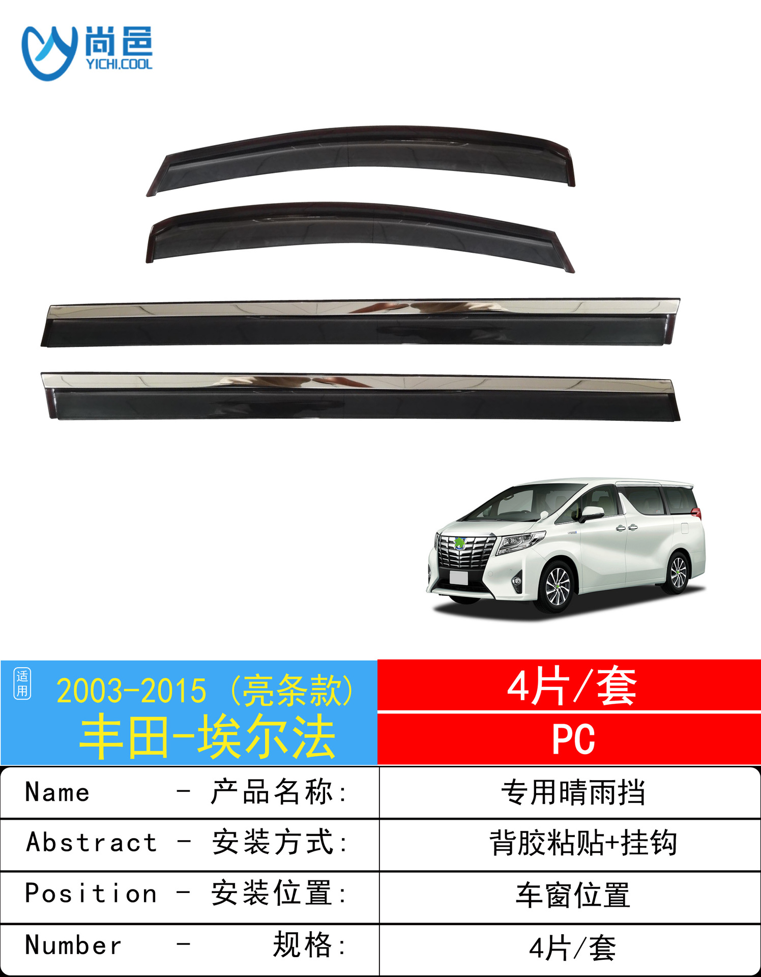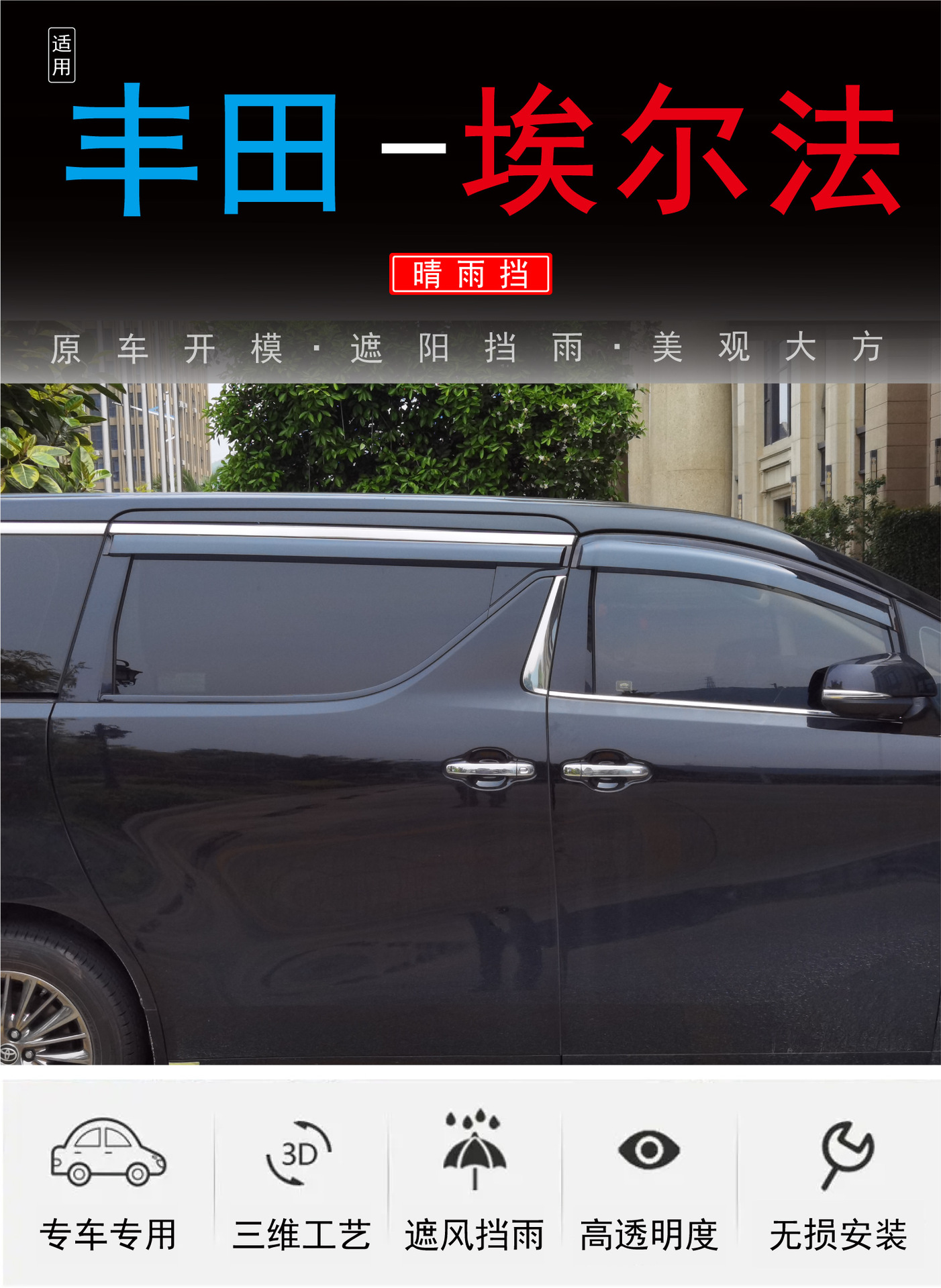 비 4 검은 PC 자동차 비 방패를 방지하기 위해 Toyota Alpha Alphard 자동차 창 수정의 국경 간 적용스토어 가기