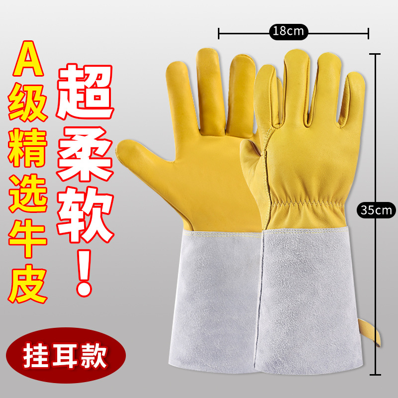 전기 용접 장갑 소가죽이 두껍게 된 고온 저항 방지 단열 땜납 용접 부드러운 내마모성 노동 보호 장갑